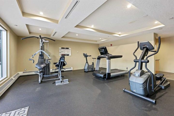 Welcome to your updated TOP FLOOR CONDO—a generous 1,049+sq. ft., 2-bed, 2-bath space DESIGNED for comfort and convenience. The OPEN CONCEPT KITCHEN features professionally REFINISHED GREY CABINETS, GRANITE COUNTERTOPS with Breakfast Bar, and STONE BACK SPLASH. The bright dining and living areas capture expansive CORNER top-floor views and open onto a private, covered balcony. UPGRADES continue throughout the home with ENGINEERED HARDWOOD, NEW PAINT, and also NEW CARPETS in both bedrooms. The PRIMARY BEDROOMS includes a WALK THROUGH CLOSET t and a 3-piece ENSUITE with a fully barrier-free, roll-in/walk-in TILED SHOWER. Both bathrooms feature vanities with GRANITE COUNTERTOPS. A second bedroom, a 4-piece main bathroom, and a BUILT IN WORKSTATION complete this highly functional layout. Full-size washer dryer is conveniently located within the ensuite. One unique feature. WHEELCHAIR ACCESSIBILITY—SIDE-BY-SIDE titled underground parking ideally suited for handicap-equipped vehicles. This complex offers desirable amenities: a fitness centre, three elevators, secure UNDERGROUND VISITOR parking, BIKE storage, and a large courtyard with BBQ area. Located on a quiet cul-de-sac steps from the University of Calgary, Research Park, Foothills & Alberta Children’s Hospitals, Brentwood Mall. University LRT Station provides quick access to Market Mall and downtown. Whether you're searching for a stylish condo in a prime location, a smart first purchase, a perfectly right-sized home, or an investment with accessibility features—this one truly stands out. Don’t miss your chance!