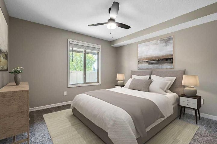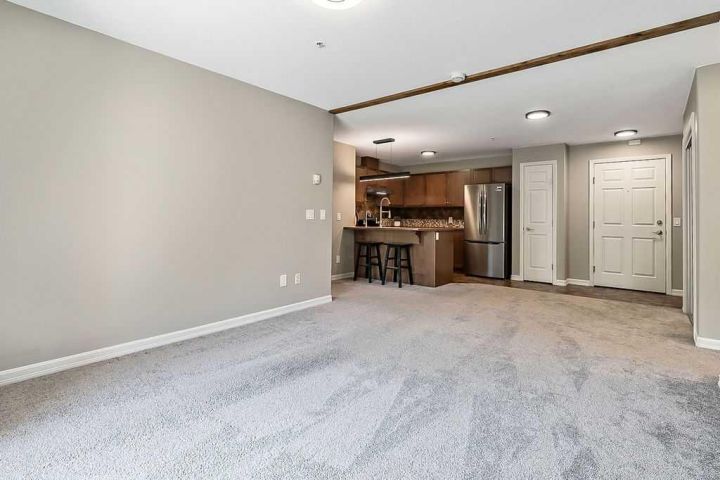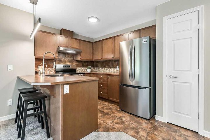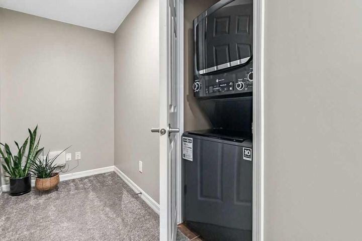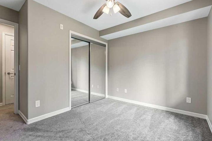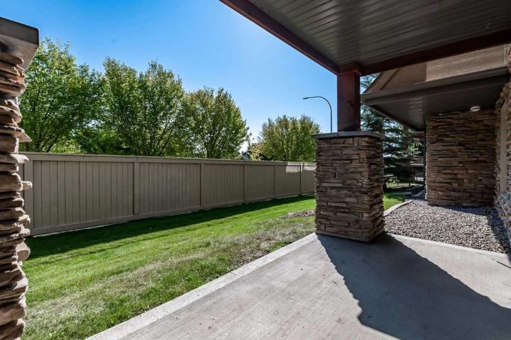 INCREDIBEL VALUE FOR 2 BEDROOMS, PLUS A DEN, 2 FULL BATHROOMS & 2 TITLED PARKING SPOTS. Welcome all Pickleball fans, you are just a short walk away from the new Okotoks Pickleball & Tennis Centre. This beautiful property is an end unit that has thoughtful updates and a smart floorplan designed for comfort and privacy. Each bedroom and bathroom are located on opposite sides of the unit, making it ideal for roommates or guests. This home comes with two parking stalls, one interior and one exterior, along with both in-suite storage and an additional storage cage. Inside, you will love the long list of upgrades, including a new washer & dryer, refrigerator, stove, and range hood, a reverse osmosis water system, and a stainless Chef sink with custom attachments. Added features like California Closets, LED counter lighting and LED lighting throughout, window coverings, ceiling fans in both bedrooms, and a rustic ceiling beam bring character and style throughout. The unit has been freshly painted (walls and ceilings), the carpet was replaced in 2023, and the home is completely clean, tidy, and move-in ready. The floorplan is enhanced by a clever flex space which is perfect for a home office, yoga nook, playroom, or extra storage. The laundry is neatly tucked away in its own closet, adding to the smart design. Step out onto your private east facing patio to enjoy your morning coffee in peace. As an end unit, you’ll appreciate having only one neighbor beside you, adding to the quiet and private feel. Beyond the unit, the community itself is second to none, offering lake access and a welcoming neighborhood environment. If you’ve been searching for a stylish, upgraded condo with parking, storage, privacy, and community amenities, this is the one to see. Ensure you allow yourself enough time to enjoy the complex. Have a stroll through the gym, hot tub and sauna area, social room and games room. When you are in the parkade ensure you look at your parking stall, storage cage and the resident's car wash. It would be hard to not enjoy living in this environment.