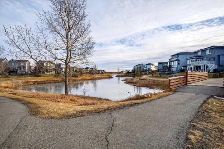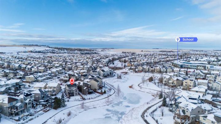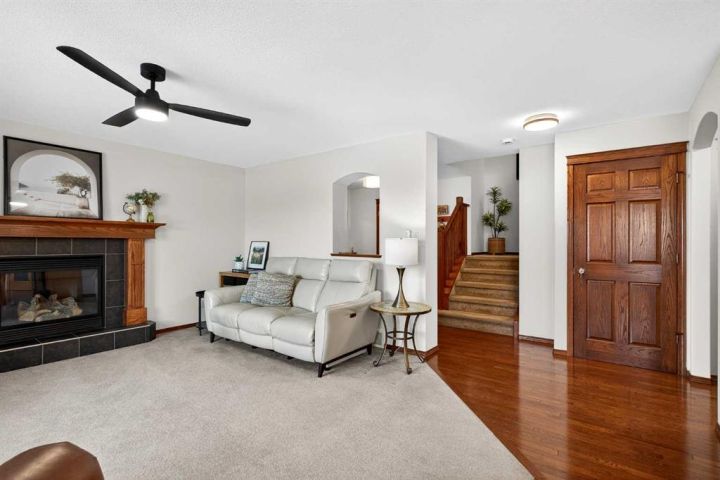 Welcome to this spacious two-storey family home in the highly sought-after Sagewood community. This property presents a rare blend of comfort and versatility, featuring a total of 4 bedrooms and 3.5 bathrooms. Recently refreshed with modern lighting fixtures and new blinds throughout, the home radiates a bright, appealing atmosphere. The main floor boasts an open-concept living area with a cozy gas fireplace, perfectly flowing into the dining room where you can step out onto a spacious balcony offering serene, direct views of the canal—your perfect spot for morning coffee or evening entertaining. Upstairs, the separation provided by the central staircase leads to a bright bonus room with vaulted ceilings, ideal for a media room or home office. The primary suite is a true retreat, featuring exceptional canal views, a walk-in closet, and a 4-piece ensuite with an extra-deep soaker tub. Adding significant value and flexibility, the illegal basement suite offers separate access, laundry, a bedroom, and a kitchenette, making it ideal for multi-generational living or rental income. The expansive backyard is a private oasis with green space, gardens, and an entertainment area, all while providing direct access to the tranquil canal walking paths. Don't miss the opportunity to own this Sagewood gem!