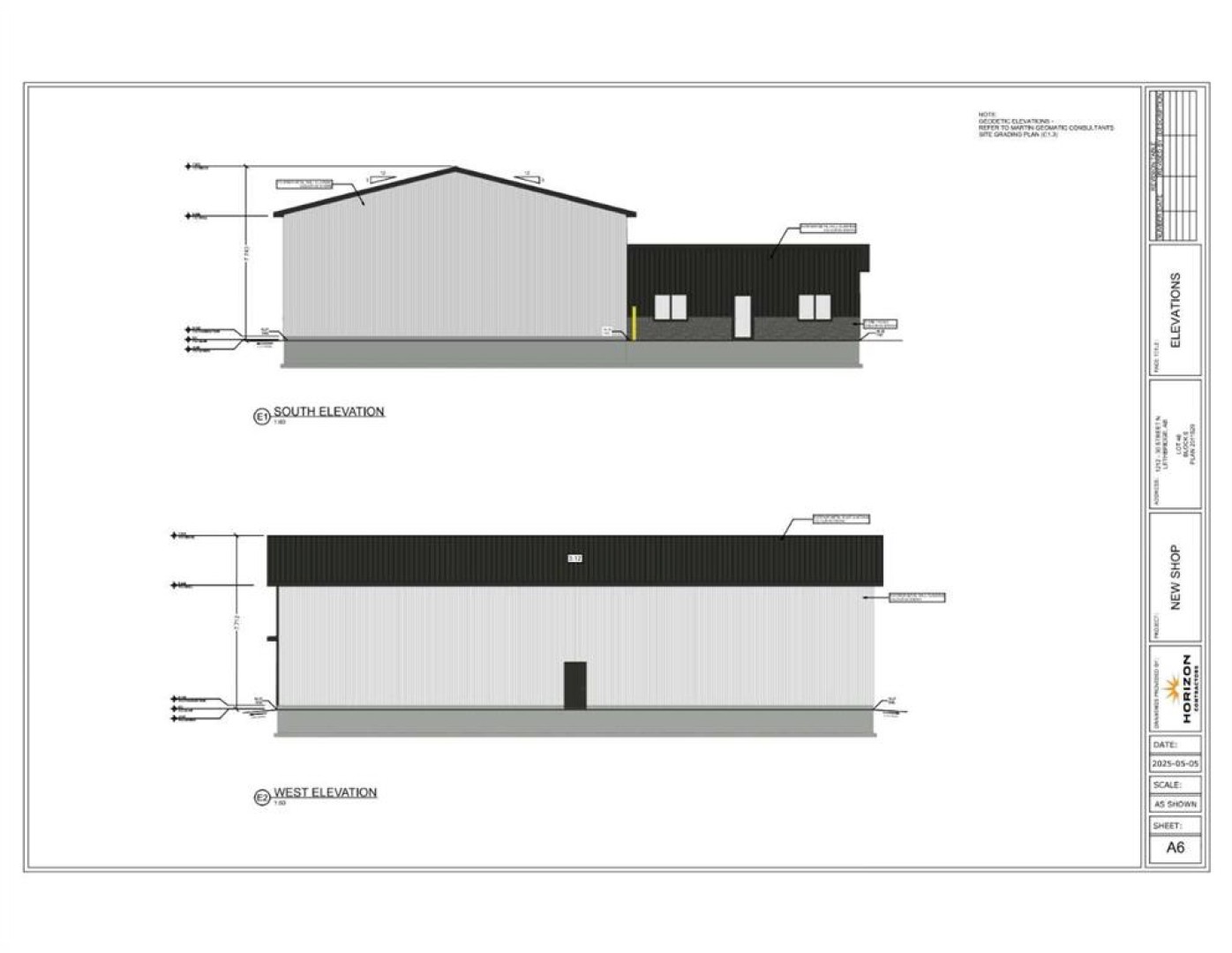 New 50' x 86' shop with three overhead doors, and attached 612 sqft fully finished office with washroom. 7500CFM Eng Air Make Up Air, mounted on mezzanine, ducted to high level with balancing device. Fresh air intake ducted from outside c/w 30x60 louvre and filter racks and 2" Foil Back Insulation. Interlock with exhaust fan to run with building lights. 2Qty 150K BTUH Radiant Heaters, vented thru common vent out roof. 70K BTUH Furnace for office space, c/w 2ton AC, 2KW electric FA Heater and Commercial Occupied Thermostat. 1hr Fire Dampers @ mech room wall for S/A and R/A 3Ø 200A 120/208V service Oil/water separator with in floor trench drains. Second washroom in shop.
