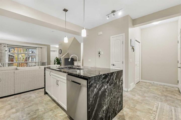 Welcome to 143 Masters Link SE – where style, light, and thoughtful design converge in the award-winning lake community of Mahogany. From the moment you step inside, the Renew floor plan makes a striking first impression. A dramatic open-to-below feature, framed by elegant iron railing, connects the main and lower levels in a way that’s as rare as it is beautiful—allowing sunlight to cascade through every corner of the home. The main level showcases new luxury vinyl plank flooring and a bright, spacious living room that easily accommodates a large sectional and invites family and friends to gather. Transition effortlessly into the chef-inspired kitchen, where an oversized central island with dual waterfall granite edges becomes the showpiece. Complete with stainless steel appliances, pendant lighting, full tile backsplash, and a convenient pantry, this kitchen blends sophistication and practicality. The expanded dining area, highlighted by yet another soaring ceiling, creates the perfect atmosphere for dinners bathed in natural light; while a discreet half bath completes this level. Upstairs, discover three generous bedrooms and two full bathrooms, including a tranquil primary retreat featuring a four-piece ensuite and a large walk-in closet. Downstairs, the almost fully finished lower level continues to impress. With its open recreation room, a convenient office nook for remote work or study, and expansive storage and laundry areas, the design ensures comfort and functionality. Thanks to the open-to-below layout, even this level feels bright and connected. Outside, the stucco exterior adds refined curb appeal, while the large rear deck is perfect for BBQs, entertaining, or simply relaxing under the evening sky. The oversized double detached garage offers ample space and convenient lane access. Situated in the vibrant community of Mahogany, residents enjoy exclusive access to the lake, year-round recreation, scenic trails and ponds, and a lively mix of shops, cafés, and amenities—all within walking distance. With quick connections to Stoney Trail and Deerfoot, this is the perfect blend of tranquility and convenience. 143 Masters Link SE—a home that feels both expansive and inviting, designed for those who appreciate light, connection, and the art of modern living.