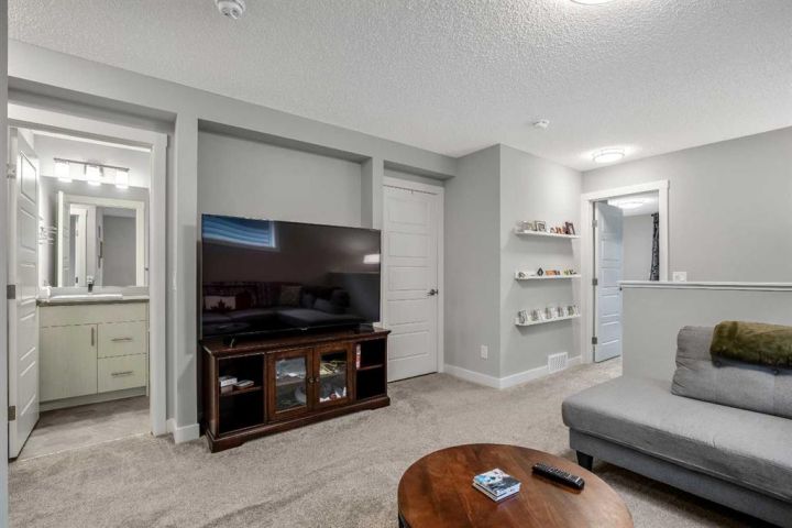 The basement is finished, the garage has been built, the landscaping is complete, and the house is like new. Here’s your chance to own a bright, spacious two-storey home where all the work has been done—without having to pay new home prices. The main floor is wide open, spotless, and flooded with natural light from the massive four-panel glass doors at the back of the house. As you walk in, you'll pass the main floor office and a convenient half bathroom before entering the large galley-style kitchen, complete with a huge quartz-topped island. The dining area and living room overlook the backyard through those impressive patio sliders. Step down into the private, quiet backyard featuring a beautiful exposed aggregate stone patio that stretches between the garage and the house, continuing along the side of the property. The front lawn is well loved, weed free and fed by underground irrigation! The 20 x 24 garage is fully wired for fast EV charging and is ready for your dream man cave or she shed makeover. Upstairs, you can enjoy your morning coffee on the south-facing balcony just off the spacious primary bedroom, which also features a four-piece ensuite bathroom and a walk-in closet. Down the hall, you'll find two more large bedrooms, another full four-piece bathroom, and a versatile bonus family room—perfect for a TV area, games room, or home gym. The basement is fully finished and offers even more functional living space. On your way downstairs, you'll pass the SEPARATE, SIDE ENTRANCE to the basement. The basement includes another large family room, a four-piece bathroom, and a generous bedroom—ready for guests, teens, or extended family. This home has it all: space, style, and move-in-ready convenience.