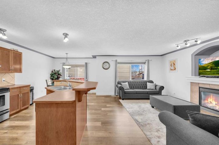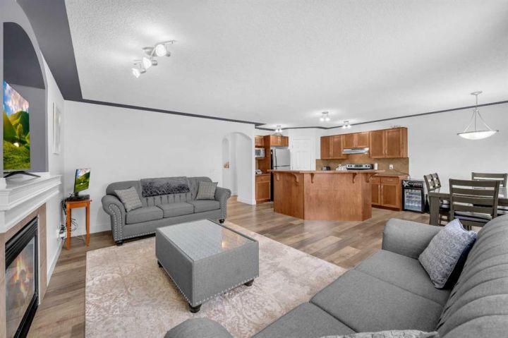 Upstairs, a massive family room with soaring vaulted ceilings provides an ideal spot for movie nights or relaxing with loved ones. This level includes three generous bedrooms, including a spacious primary suite complete with a 4-piece ensuite.