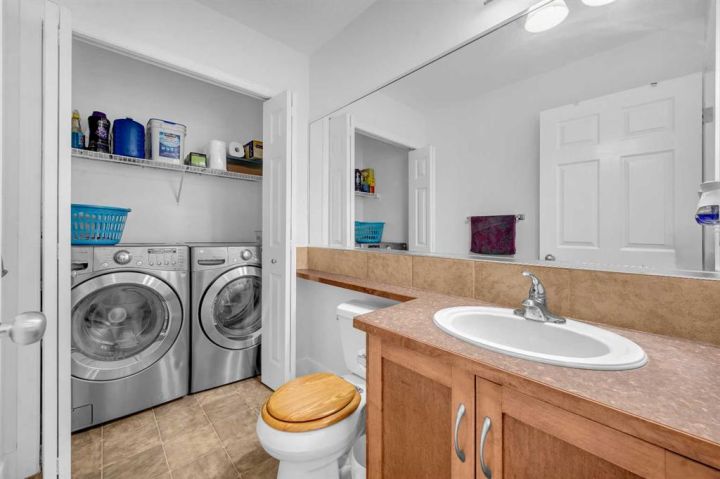The main floor features a versatile office or den, a spacious living room, and a dining area that leads directly to your private deck, perfect for morning coffee or evening BBQs. You’ll also appreciate the convenience of main-floor laundry and the practicality of a double attached garage.