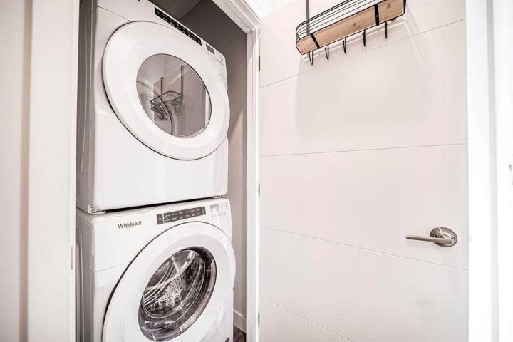 Welcome home to this thoughtfully designed 2-bedroom, 2.5-bath plus den townhome, featuring an outstanding open-concept floor plan and exceptional CORE PERFORMANCE specifications. The interior offers Quartz countertops throughout, sleek stainless steel Whirlpool appliances, Luxury Vinyl Plank flooring on the main level & second level, James Hardie siding, and Moen fixtures. Additional highlights include a tankless water heater with a built-in circulation pump, an Ecobee Alexa-enabled thermostat with voice control, A/C rough-in, TRIPLE-PANE windows, an LED lighting package, under-cabinet kitchen lighting, and your own in-suite washer and dryer.