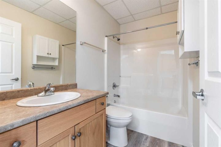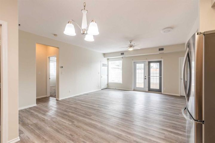 Welcome to a secure, age restricted condo building located in the small town of Redcliff, just on the outskirts of Medicine Hat. You'll love the slower pace of things in Redcliff, but also the easy accessibility to the city and small town amenities that offers everything you'd need within walking distance. Across the street is a meeting hall with events for those looking for company, the library and skating rink are right next door and the outdoor pool is just another block away. You'll love the main floor access of the unit, with fresh vinyl-plank flooring throughout the kitchen, dining and living room. The unit is large with an open floor plan, including a large primary bedroom complete with 3-piece ensuite. At the rear of the building is a dedicated parking stall with plugins and a cute patio for you to enjoy the summer months. With a friendly group currently living in the building, come see why you should make Redcliff your next stop.