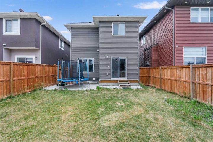 Gorgeous Family Home | 1,867 SqFt | 3 Beds | 2.5 Baths | Open Floor Plan | Expansive Living Space | Full Height Cabinets | Stainless Steel Appliances | Kitchen Island | Barstool Seating | Pantry | Large Windows | Ample Natural Light | Gas Fireplace | Main Level Laundry | Upper Level Bonus Room | Side Entry to Basement | Unfinished Basement | Large Backyard | Patio | Fully Fenced | Double Attached Garage | Driveway | Incredible Location | Near CBE Hugh A Bennet School, Parks & Walking Paths. Welcome to this gorgeous 2-storey family home boasting 1,867 SqFt throughout the main and upper levels with an additional 724 SqFt in the unfinished basement. The front door opens to a foyer and the front living room. The living room is a great space to enjoy socializing with your friends and family as you host! The open floor plan kitchen, dining and family rooms with high ceilings, recessed lighting and large windows amplifies the space in this home. The kitchen is outfitted with full height cabinets, stainless steel appliances, quartz countertops and a corner pantry. The kitchen island with a barstool seating area is the perfect place to enjoy small meals or socialize while you cook! The dining room has sliding glass doors that lead to the backyard with a patio for outdoor dining! The family room has large windows that overlook the backyard and has a gas fireplace with a floor to ceiling tile accent wall behind. The main level is complete with a hall laundry and a 2pc bath. Upstairs holds 3 bedrooms, 2 full bathrooms and a bonus room. The primary bedroom is expansive with a walk-in closet and a private 4pc ensuite bath. The ensuite has a deep soaking tub, walk-in shower and a single vanity with storage below. Bedrooms 2 & 3 are both a great size and share the 4pc bath with a tub/shower combo. The bonus room is a great addition to your family's entertainment space. Downstairs, the unfinished basement has a separate side entry making any future development easy! Outside the home is a fully fenced backyard with a great lawn space and concrete patio for a dining set. The front double attached garage and driveway allow for 4 vehicles to be parked at any time plus street parking is readily available too. This home is surrounded by amenities; the CBE Hugh A Bennet School, parks, playgrounds and walking paths are all minutes away. Hurry and book your showing at this incredible family home today!