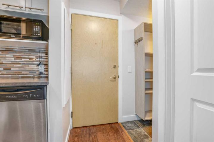 Beautifully upgraded and meticulously maintained, this open concept condo offers exceptional style and comfort in the heart of Mission. The thoughtfully designed floor plan features a open and bright recently renovated kitchen with modern cabinetry, ample counter space, and a convenient breakfast bar. The adjoining living room is bright and welcoming, highlighted by large windows and access to a private deck for morning coffee or entertaining. This unit features contemporary plank and tile flooring throughout, along with designer lighting, updated doors, and fresh neutral paint. The primary bedroom is generously sized and includes a large closet. A beautifully renovated 4-piece bathroom showcases premium finishes and a sleek, modern design. Additional highlights include in-suite laundry, assigned parking, and over sized storage locker conveniently located in the basement. This well-managed building is ideally situated on a quiet , tree lined street just steps from Elbow River Pathway system, 4th street SW , 17th Avenue SW , transit, and the vibrant amenities of MNP Community & Sports Center. Whether you're a first time buyer, investor, or someone seeking a stylish inner-city home, this condo offers exceptional value in one of Calgary's most desirable neighborhoods. Recently updated with new Roof and siding upgrade in 2025 .Priced to sell
