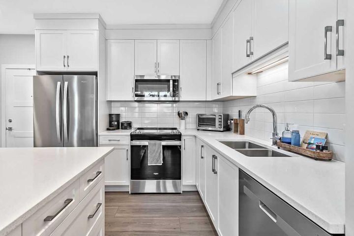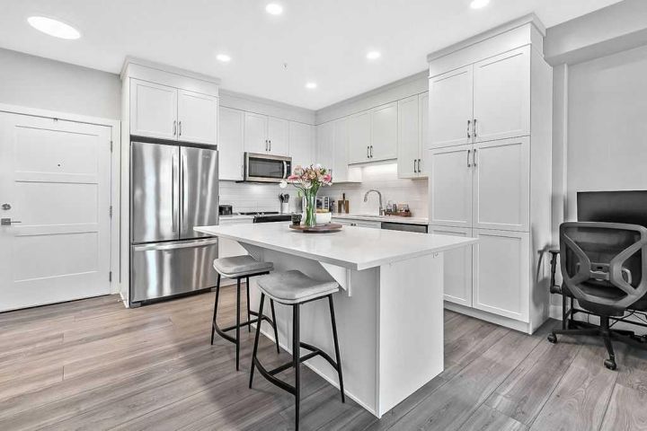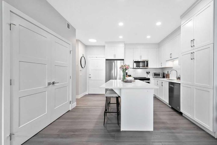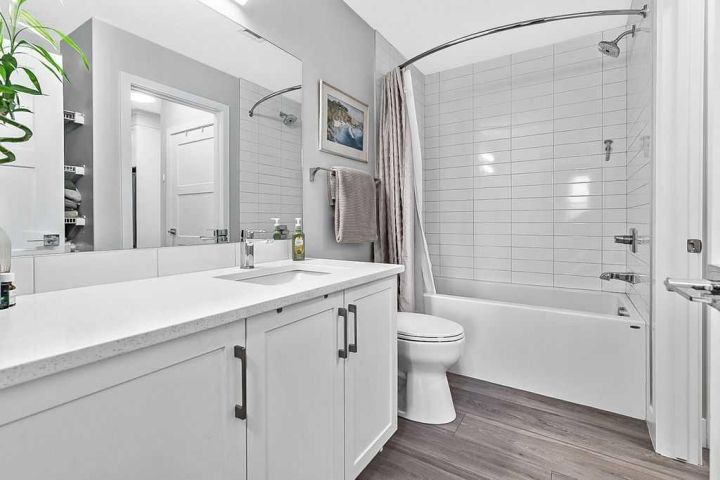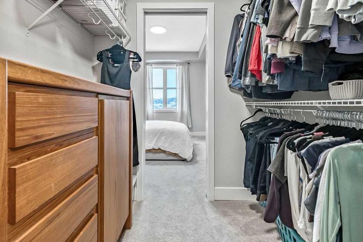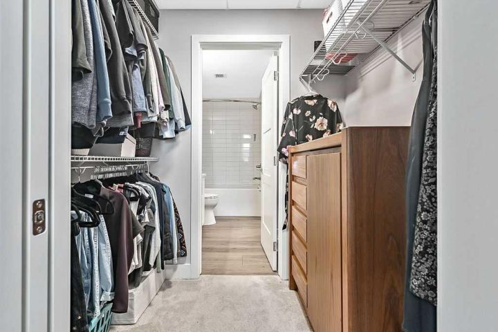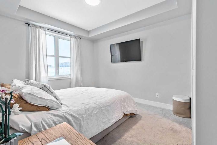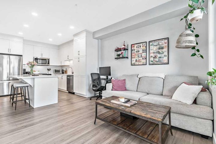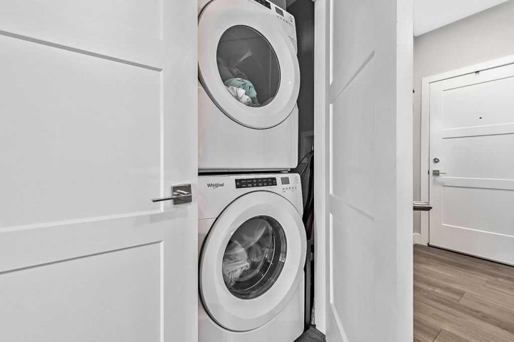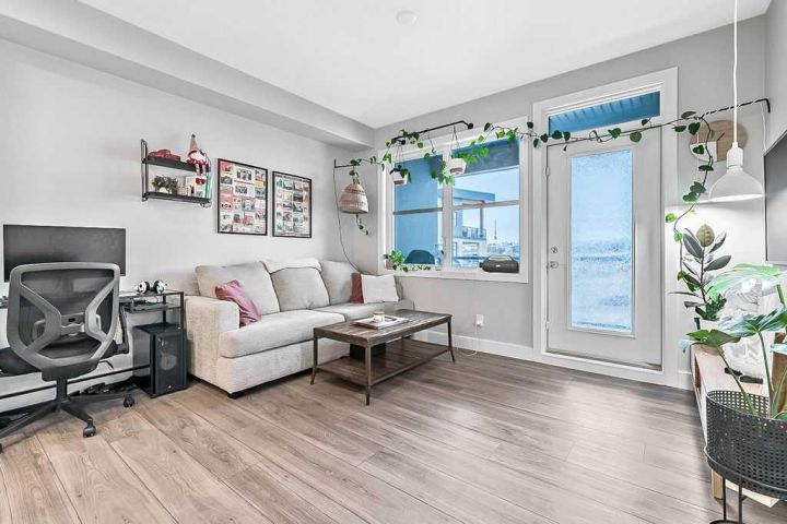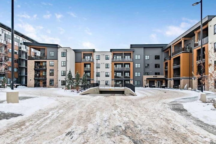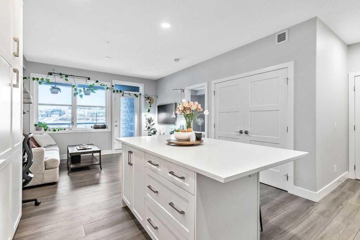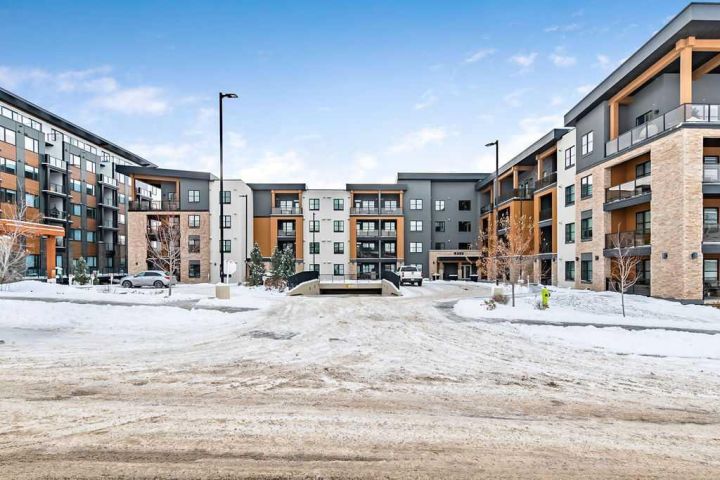 Welcome home to this beautifully upgraded 1 bedroom adorable condominium that combines modern style with everyday convenience. As you enter, you will immediately fall in love with the bright, open concept living area, featuring large windows, luxury vinyl plank flooring, and a warm, cheerful vibe throughout. The gorgeous kitchen is a true highlight, boasting 40" upper cabinets extended to the ceiling with filler, elegant quartz countertops, stainless steel appliances (including a fridge with ice and water), and an abundance of both cabinet and counter space. The laundry area is cleverly tucked away in its own dedicated closet for added convenience. Step into the spacious living room with patio doors leading out to your private balcony, the perfect spot to unwind or entertain, complete with space for seating and a gas line for your BBQ. The bedroom is generous in size, easily accommodating a king-size bed and featuring a walkthrough closet that leads to the stylish 4 piece bathroom, with quartz counters, great storage, and tile to the ceiling in the tub/shower. This fabulous home also includes a prime end unit parking stall in the heated parkade, offering extra storage and the incredible bonus of an EV plug for your convenience. Enjoy a pet friendly building (with approval) in a walkable community featuring scenic paths, close access to transit and the LRT, and an impressive selection of shops, restaurants, and amenities just steps from your door. You may never need to drive again. The perfect blend of modern upgrades, thoughtful design, and unbeatable location, this condo truly has it all. Don’t miss your chance to call this charming home your own. This is an incredible way to get into the Calgary market.