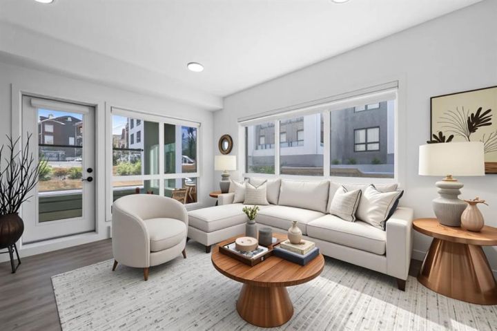 Step into the lifestyle you’ve been waiting for with this bright and beautifully appointed 2-bedroom, 2-bath southeast-facing corner condo in the thriving community of Livingston. Bathed in natural light and thoughtfully designed, this move-in ready home features modern vinyl plank flooring, sleek lighting, and convenient in-suite laundry. A versatile den adds convenient extra storage or the perfect work-from-home nook, while the open-concept layout flows effortlessly into your own expansive private patio - an ideal outdoor extension of your living space, perfect for morning coffee or evening wind-downs. Titled underground parking ensures year-round comfort and peace of mind, with added conveniences like a dog wash and car wash station also located in the secure underground space. Situated just minutes from the airport, CrossIron Mills, and with seamless access to Stoney and Deerfoot Trails, you’re perfectly connected to everything Calgary has to offer. Plus, enjoy unmatched community amenities - from outdoor skating rinks and splash parks to a full gymnasium and multi-sport courts. Whether you’re a first-time buyer, investor, or seeking a smart lifestyle upgrade, this vacant unit is ready for immediate possession. Don’t miss your chance to live where convenience, comfort, and community come together.