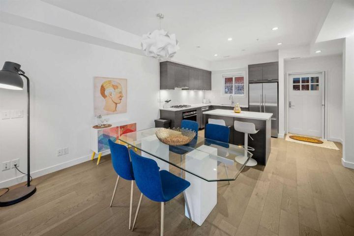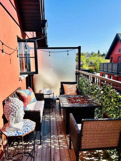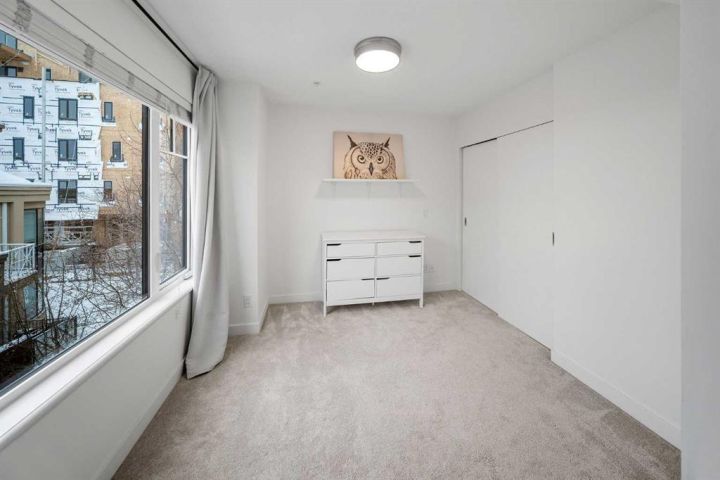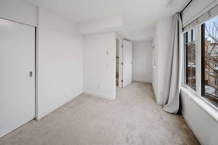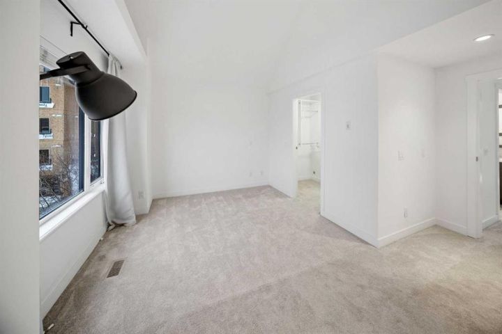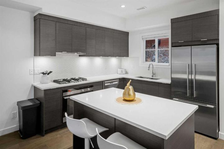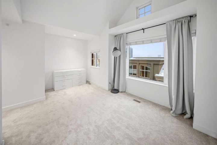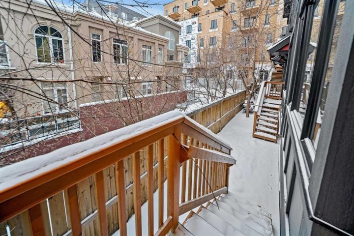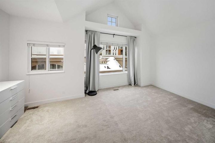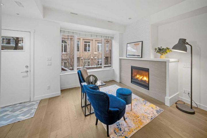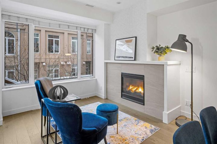 Three bedrooms, two bathrooms, dedicated storage, and titled parking come together in a boutique brick row building with subtle brownstone vibes and classic urban styling. This townhome blends vibrancy, privacy, and low maintenance living in one of Calgary’s most walkable locations. Just moments from the energy of 17th Avenue and the Beltline, you are surrounded by fabulous local dining, cafes, boutique fitness, and everything that makes inner city living so coveted. Tucked away from the street for added peace, the secure setting of the building creates an inviting atmosphere where, in the warmer months, neighbours often unwind on their own private terraces with barbecues or a glass of wine, adding a warm community feeling while maintaining personal privacy. Inside, this home offers the spaciousness of a traditional layout with the ease of condominium living. The modern kitchen features quartz counters, stainless steel appliances including a five burner gas range, generous cabinetry, a breakfast bar for casual meals, and the option to take dinner parties to the dining table that easily seats six. It all flows naturally into the inviting living area where a cozy gas fireplace anchors the room. The second level includes two comfortable bedrooms, a four-piece bathroom, and full size laundry. One more level up is the dedicated entirely to the primary retreat, the true showstopper of the home. This primary bedroom feels both serene and elevated with its soaring vaulted ceilings, wrapped in windows and offers a truly calming sense of space. A generous walkthrough closet offers abundant hanging space and leads to the relaxing spa inspired ensuite complete with double vanities, a glass shower, a deep soaker tub, and the added luxury of heated floors. Topping off this decadent level is the private balcony, perfectly positioned to overlook the front courtyard while capturing beautiful westerly views. The lower parkade entry level has a spacious flex or storage room which provides loads of shelving for effortless organization. This home also includes two additional outdoor lounging spaces; A charming backyard area offers a quiet spot for al fresco dining and relaxing, while the welcoming front terrace is ideal for morning coffee, evening wine, and summer barbecuing with friends. Small pets are welcome too (with board approval), and some owners have created a cute outdoor relief spot in their backyard - on leash or with board approved fencing, ideal for quick winter outings with your furry friend. Your secured and titled indoor/heated parking stall is conveniently located beside your parkade door with room for a bike. This beautifully maintained unit is also offered turn-key (move-in ready) with it’s furnishings & all kitchen items … for a seamless move. With only nine units in the building and close proximity to parks, schools, gyms, hot yoga, shopping, transit, and major routes, this home delivers elevated inner city living at its finest.