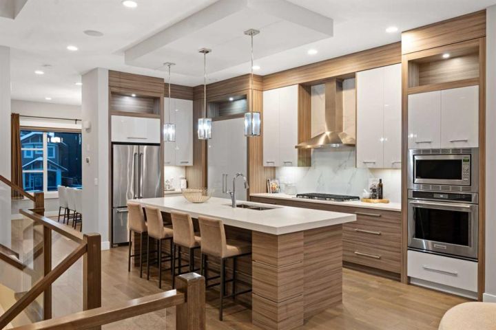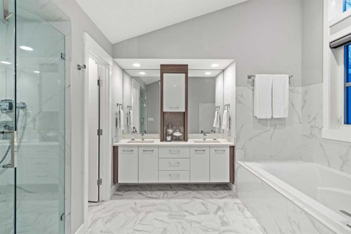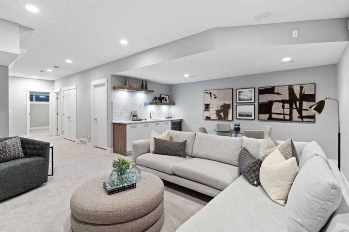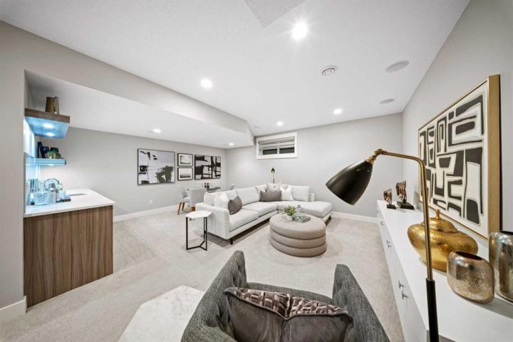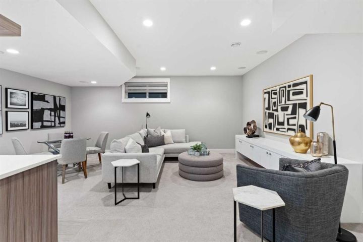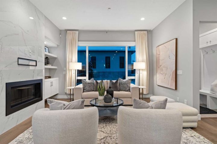 Step inside this exceptional 4-bedroom home in Marda Loop, offering nearly 3,000 sq.ft. of finished living space and a layout designed for modern living. The main level makes an immediate impression with 10 ft ceilings, rich hardwood, and a seamless flow from the dining area into a sleek, contemporary kitchen featuring quartz counters, a statement island, crisp white cabinetry, and stainless steel appliances. The living room delivers that “wow” moment with its floor-to-ceiling gas fireplace and custom media wall, all framed by large windows overlooking the sunny backyard and deck—perfect for summer grilling or effortless indoor-outdoor hosting. A 2-piece powder room completes the level. Upstairs, you’ll find three bright bedrooms, a full 4-piece bath, and convenient laundry, while the primary retreat stands out with vaulted ceilings, expansive windows, a private balcony, walk-in closet, and a luxurious 5-piece ensuite with double vanities, a soaking tub, and jetted shower. The fully developed basement expands the living space with a generous family room, wet bar, a second 4-piece bath, and a fourth bedroom with a large closet. Added features include air conditioning, a built-in Sonos system, an alarm system, and a double detached garage.