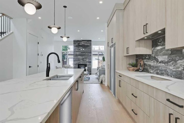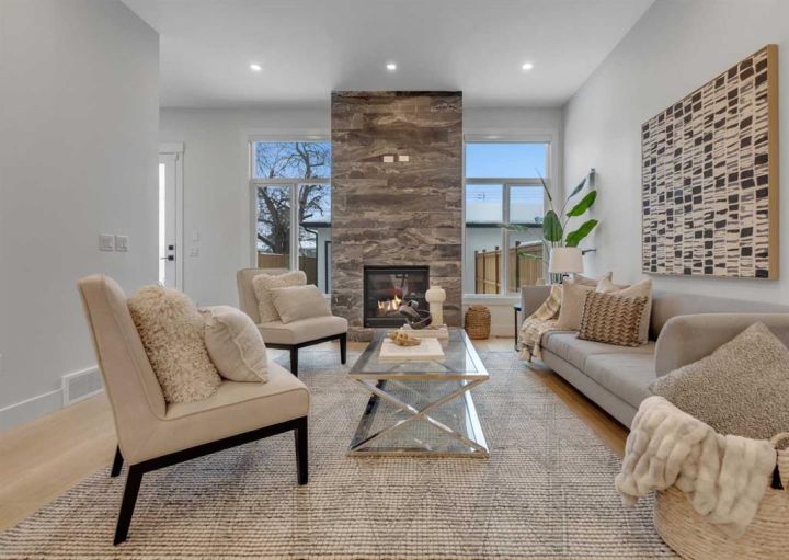 Sleek, Stylish, and Thoughtfully Designed – Welcome to 6416 34 Ave NW! From the moment you arrive, this home makes an impression. Modern curb appeal, a quiet tree-lined street, and a location that offers the perfect balance of city convenience and nature's tranquility. Step inside, and you'll instantly feel the elegance in every detail.The dining room sets the stage—an inviting space with designer lighting that creates the perfect ambiance, whether it's a casual brunch or a lively dinner party. The kitchen is an absolute showstopper, featuring ceiling-height custom cabinetry, gleaming quartz countertops, and a large island that serves as the heart of the home. Whether you're a gourmet chef or a takeout connoisseur, this space is as functional as it is beautiful. Flowing seamlessly from the kitchen, the living room is warm and welcoming, centred around a stunning full tile-surround fireplace with expansive windows on either side that bring in gorgeous natural light and a view of the backyard. A space like this just feels good—cozy yet sophisticated, perfect for quiet nights or entertaining guests. Tucked away at the back of the home, the mudroom is designed for real life, with custom storage, and a sleek tiled floor that stands up to Calgary’s seasons. Right next to it, the powder room feels upscale and refined—no detail overlooked.Head upstairs, and the luxury continues. The primary suite is a true retreat, with soaring ceilings, a large walk-in closet, and an ensuite that’s pure indulgence. A fully tiled shower with steam rough-in, heated floors, a soaker tub built for long, relaxing evenings, and dual vanities with quartz counters—this is the kind of space that makes every morning feel like a spa day. Two additional bedrooms, both bright and spacious, share a modern 4-piece bathroom with chic finishes. The laundry room is equally impressive, complete with a quartz folding counter, built-in cabinetry, and a deep sink—because practical should still be beautiful. And let’s not forget the fully self-contained 2-BEDROOM LEGAL BASEMENT SUITE (subject to permits and approvals by the city). With its own private entrance, it offers a full kitchen with quartz counters and ceiling-height cabinets, a spacious living area, two generous bedrooms, and a sleek 4-piece bath with a full tile surround. Whether it’s for extended family, guests, or rental income, this space adds incredible value.To top it all off, this home sits in a prime location—steps from the Bow River pathways, minutes to Winsport, U of C, and downtown. You’re surrounded by parks, shops, and some of the best local cafés in the city. Disclaimer: The photos are from the show suite.
