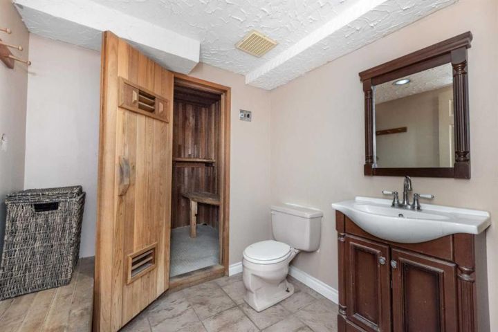 Bookcases, Built-in Features, Ceiling Fan(s), Central Vacuum, Granite Counters, Kitchen Island, Open Floorplan, Sauna, Wood Windows