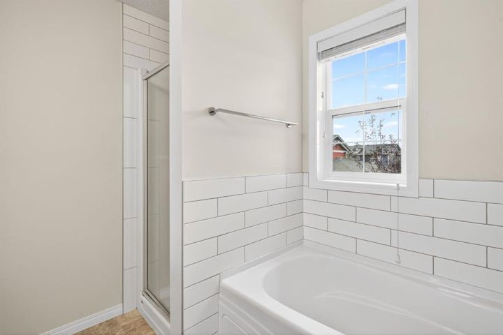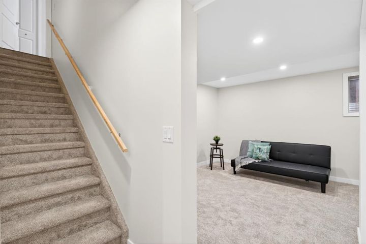 Inside, the layout feels open and welcoming, with a fireplace to cozy up around and a kitchen that has granite counters and warm wood cabinets. You will love the South Facing Sun on your back deck. Off the Kitchen is your conveniently located double attached garage. Upstairs you’ll see the Primary Bedroom with a 4-Piece Ensuite (Soaker Tub for those long days), 2 more bedrooms, another full bath, and laundry right where you need it. The basement is brand new, professionally finished (with permits) and adds a bright and spacious rec room, a fourth bedroom, and another full bath (stunning tiled shower with glass door) — perfect for guests, teens, or movie nights.