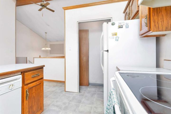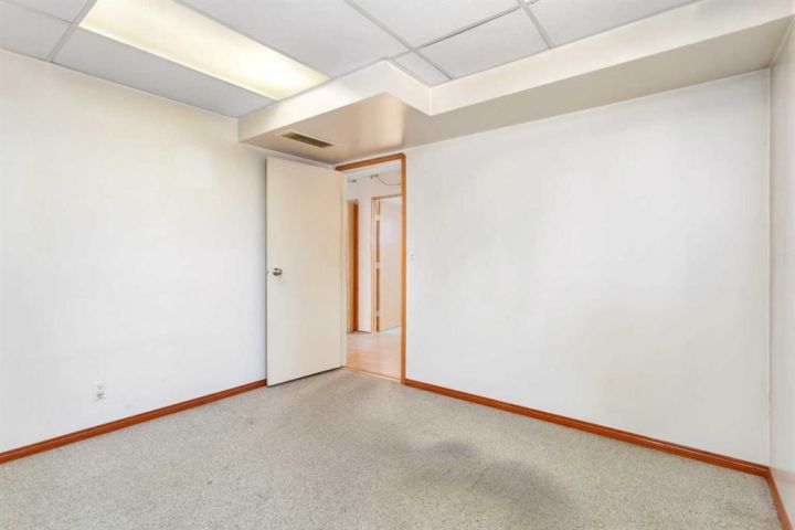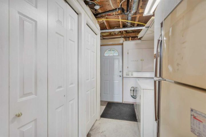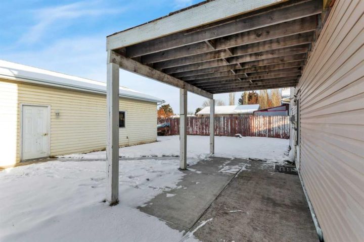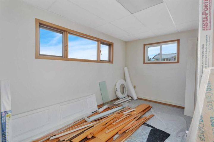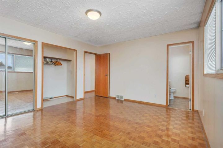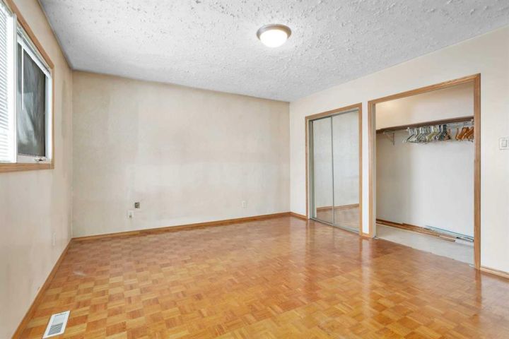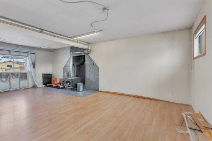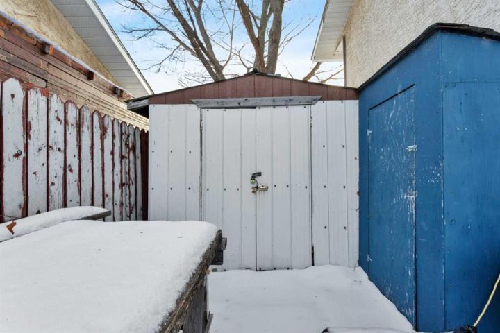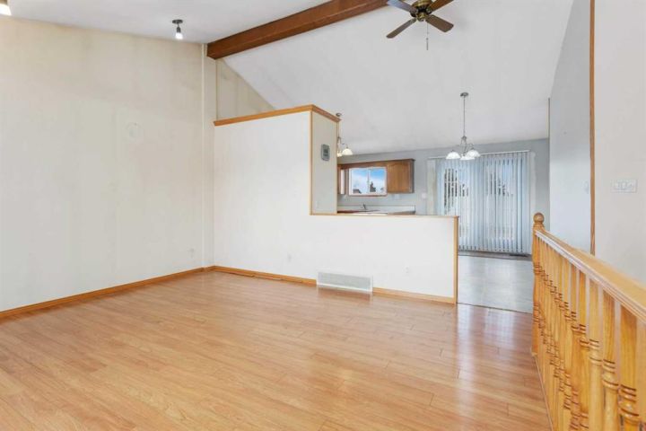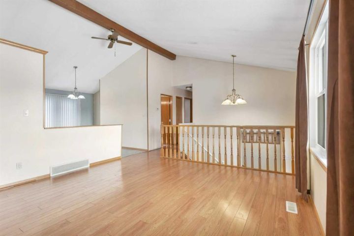 Lots of space and loads of potential! This 3 bedroom + den bi-level sits on a corner lot in a desirable Close with green space in the middle. The front entryway is spacious and the living room and kitchen are bright and open with some new windows and impressive vaulted ceiling. The u-shaped kitchen has lots of counter space and built in pantry. Good dining area with patio doors to back deck. 4 piece bathroom has tiled bath-tub & sky-light and both bedrooms are sized well with a 2 piece ensuite & double closets in the Primary. The basement has a separate entry and 1 bedroom, plus a den (needs a closet) with a 3 piece bathroom. Numerous windows let in lots of natural light and the good sized family room has a wood burning stove. Separate entry boot room area accommodates laundry with shelving and storage. The backyard is fully fenced and the detached garage is oversized with shelving and work benches. Close to shopping and transit and easy highway access!