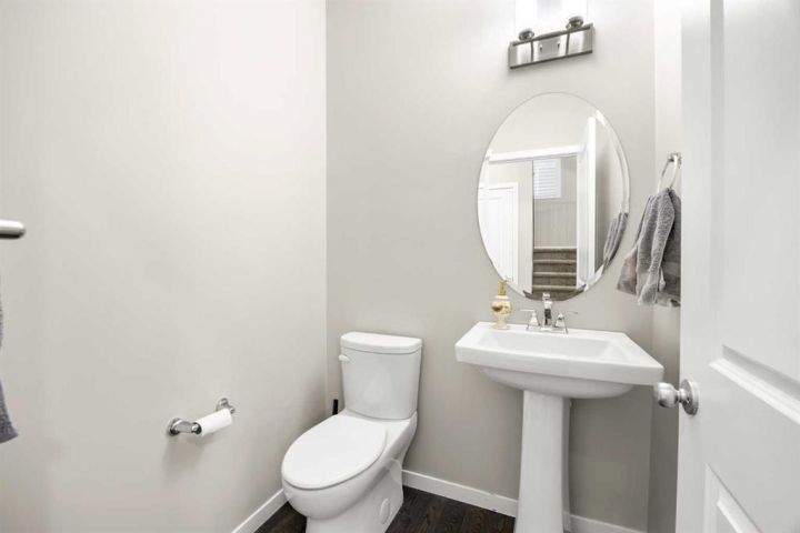 You’re welcomed by a warm Foyer and 9-ft ceilings throughout the main floor. A convenient Main Floor Bedroom adds flexibility for guests or a home office. The heart of the home features gleaming hardwood flooring and an east-facing open layout that brings in abundant natural light. The well-appointed Kitchen includes a centre island, granite countertops, ample white cabinetry, stainless steel appliances, and a Walk-In Pantry for exceptional storage. The Living Room offers a cozy gas fireplace with mantle and a large window overlooking the yard, while the spacious Dining Room easily accommodates an eight-person dining table. Step outside to the deck and sunny east-facing backyard, complete with a generous concrete patio (31’5” x 25’9”)—ideal for kids’ play, gatherings, or summer entertaining. This level is finished with a Powder Room.