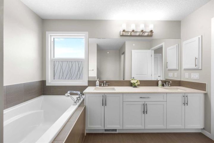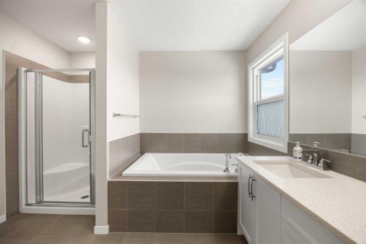 On the upper level, a large Bonus Room with vaulted ceiling provides the perfect space for family movie nights or relaxation. The spacious Primary suite features a large Walk-In Closet and a spa-inspired 5-piece ensuite with double vanity, soaker tub, and separate shower. Two additional well-sized Bedrooms, a 4-piece Bath, and an upper Laundry Room with closet organizer complete the upper floor.