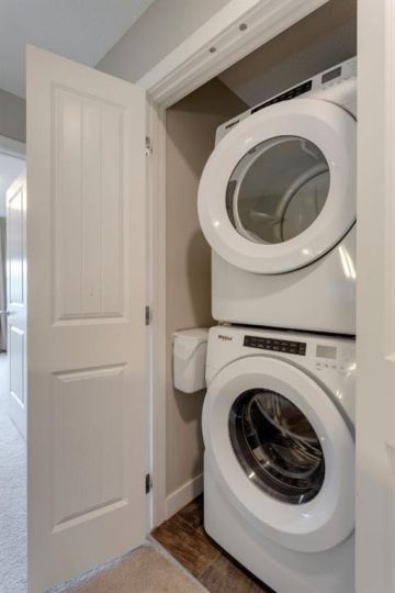 Central Air Conditioner, Dishwasher, Electric Stove, Microwave, Range Hood, Refrigerator, Washer/Dryer Stacked