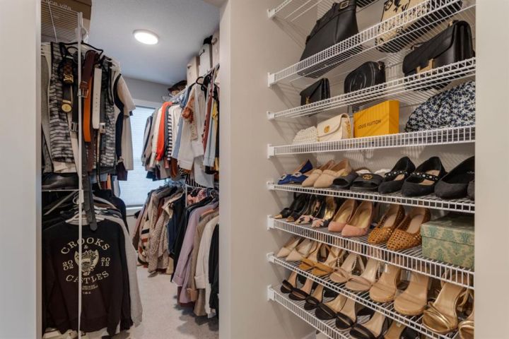 The main level is open, bright and functional — featuring 9 ft ceilings, quartz countertops, upgraded cabinetry, stainless steel appliances and thoughtful layout for both day-to-day living and hosting. Upstairs, the primary suite is a standout: a custom walk-in closet with upgraded shelving and a private ensuite equipped with a double shower head system — a detail rarely found at this price point.