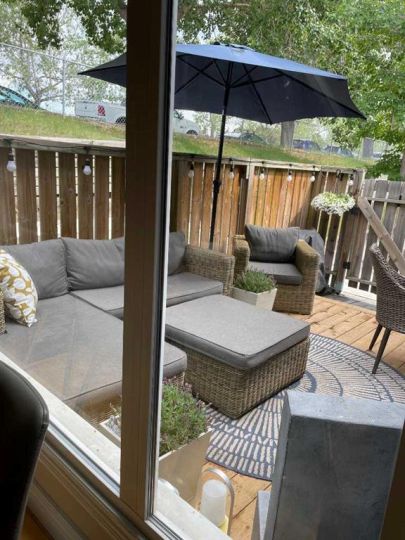 The fenced yard has been decked so you can enjoy the warmer months in style, easily fitting a patio table & chairs, or a more relaxed conversation set. A small green space with turf for anyone with furry friends. With the best garage in the complex, this unit features a rare 2.5-car heated oversized garage offering ample parking and storage options. The roof, siding, hot water tank, and patio doors have all been recently replaced.