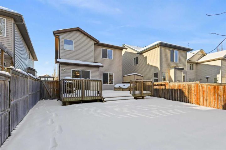 Welcome to the mature and highly popular community of New Brighton, a neighbourhood celebrated for its strong sense of community, family-friendly amenities, and inviting lifestyle. Perfectly positioned within walking distance to the New Brighton Club House, this home offers unparalleled access to a vibrant hub of recreation. From the summer spray park and winter skating, to year-round programs, studio classes, a banquet room, movie nights, babysitting evenings, and more—this truly is a community designed for connection and family fun. This immaculately maintained and fully finished 2-storey home offers over 2,300 square feet of developed living space, providing comfort, warmth, and room to grow. Thoughtfully designed for family living, the home welcomes you with a warm, neutral colour palette and a layout that feels both functional and inviting. A spacious entryway opens into the generous living room, where a beautiful gas fireplace with tile surround and wooden mantle sets the tone for cozy gatherings. The well-planned kitchen features a raised eating bar ideal for casual meals, while the designated dining area overlooks the expansive backyard—perfect for memorable sit-down dinners with friends and family. Oak cabinetry, full tile backsplash, rich wood tones, and a corner pantry complete this wonderful culinary space. Convenience is at its best on the main level with a guest half bath and a sizeable laundry/mud room, offering direct access to the double attached garage, which features impressively high 10+ foot ceilings. Upstairs, the home continues to impress. A massive bonus room over the garage showcases an abundance of windows, flooding the space with natural light—an ideal spot for movie nights, playtime, or relaxation. Three well-sized bedrooms complete the upper floor, including the Primary Bedroom tucked at the rear of the home for added privacy. The primary suite features a large ensuite with an oversized soaking tub, separate shower, private water closet, and walk-in closet. A full four-piece bath serves the additional bedrooms. The fully finished basement adds valuable living space, offering a large family room, a full bathroom, a fourth bedroom (window not to egress), and a charming nook currently used as a prayer room—though equally suitable as a home office, den, or extra storage. Step through the elegant French sliding doors off the dining room to discover your massive full-width deck, stretching nearly 24 feet by 12 feet. Overlooking your spacious backyard, this outdoor haven is perfect for summer BBQs, entertaining, or simply unwinding after a long day. Set in a vibrant neighbourhood close to High Street in McKenzie Towne, the shops of 130th Avenue, and with quick access to 52nd Street, Deerfoot Trail, and Stoney Trail, this location delivers both convenience and community. From the moment you walk through the door, this home feels right—well loved, beautifully cared for, and filled with warmth and positive energy. Book your tour and experience it.