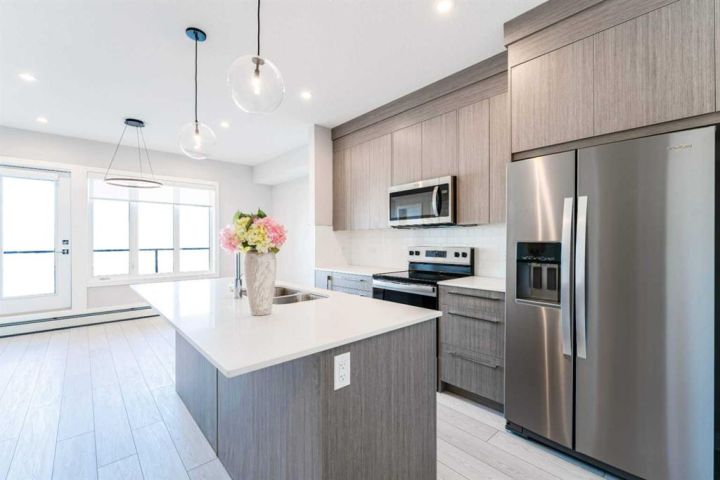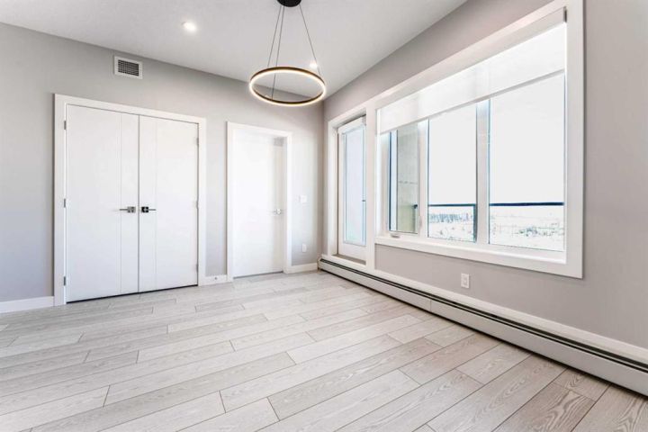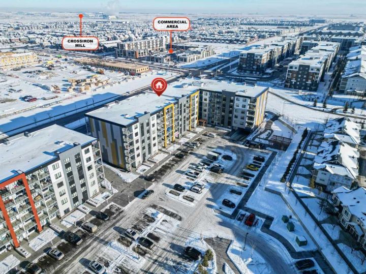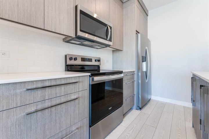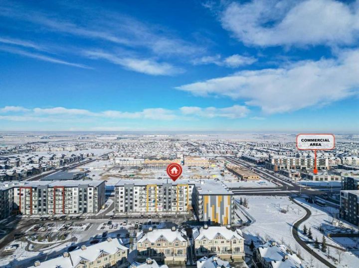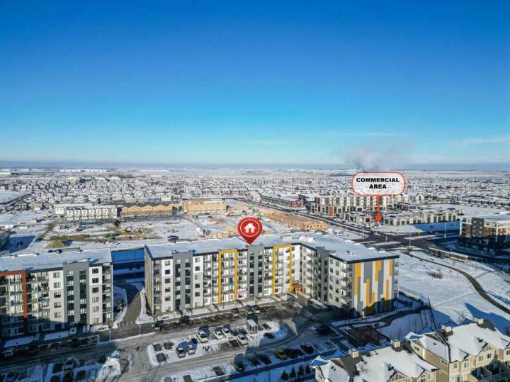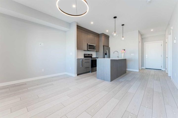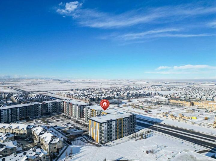 Welcome to 3613, 60 Skyview Ranch Road NE — a bright and thoughtfully designed 2-bed, 2-bath condo offering 708.99 sq ft of modern, comfortable living. This inviting home features durable vinyl plank flooring throughout, tile in both bathrooms, and an abundance of pot lights that enhance the clean, contemporary feel. Large windows fill the space with natural light, creating a warm and open atmosphere. The kitchen is stylish and functional, complete with stainless steel appliances including a microwave hood fan, stove, refrigerator, and dishwasher. Stone countertops, generous drawers, and a convenient breakfast bar make this space perfect for cooking, hosting, or enjoying a relaxed morning coffee. The primary bedroom includes a walk-in closet and a private ensuite with a spacious walk-in shower. The second bedroom is well-sized, with the nearby full bathroom offering a tub/shower combo — ideal for guests or roommates. In-suite stacking laundry adds everyday convenience. This unit includes a titled underground parking stall, access to bicycle storage, and the building features two elevators for easy movement throughout. The community also offers a lovely picnic area, perfect for enjoying sunny days outdoors. Located with quick access to Metis Trail, Stoney Trail, and Deerfoot Trail, commuting is seamless, and you’re just a short drive from the shopping, dining, and entertainment at CrossIron Mills. A great opportunity for first-time buyers, downsizers, or investors looking for comfort and convenience in a well-connected location.
