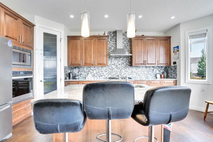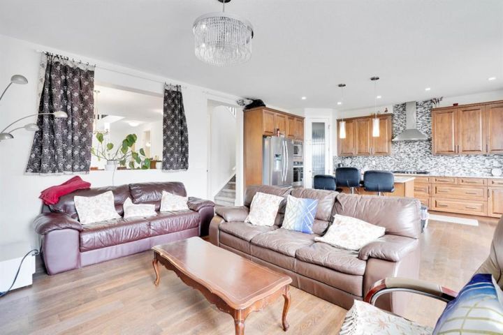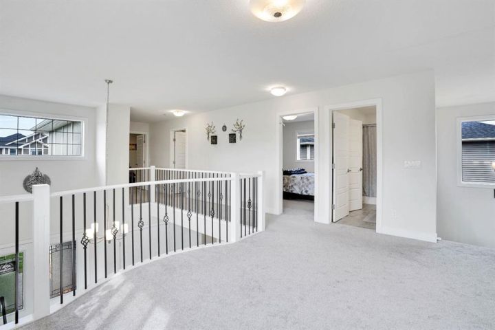 Welcome to this beautifully upgraded home offering over 2,600 sq ft of above-grade living space, situated on a spacious corner lot in the heart of Chestermere. This premium lot offers extra yard space, enhanced curb appeal, and added privacy—perfect for families who value outdoor living. The main floor features an open-to-above living room filled with natural light, a full bathroom, a mudroom, a versatile office that can be used as a bedroom, a spacious dining area, and a stunning upgraded kitchen with a large island ideal for casual meals and entertaining. Upstairs, you’ll find four well-appointed bedrooms, including two luxurious master suites each with their own en-suite and walk-in closet, plus two additional bedrooms, a full bathroom, a convenient laundry room, and a generous bonus room perfect for relaxing or family time. The fully finished basement offers a separate entrance, a large recreational area, two additional bedrooms, and a full bathroom—ideal for extended family living or rental potential. Completing this home is a triple car garage and an expansive backyard. Located close to schools, parks, Chestermere Lake, shopping centres, restaurants, daycares, and the public library, this home combines space, function, and an unbeatable location in one of Chestermere’s most sought-after communities.