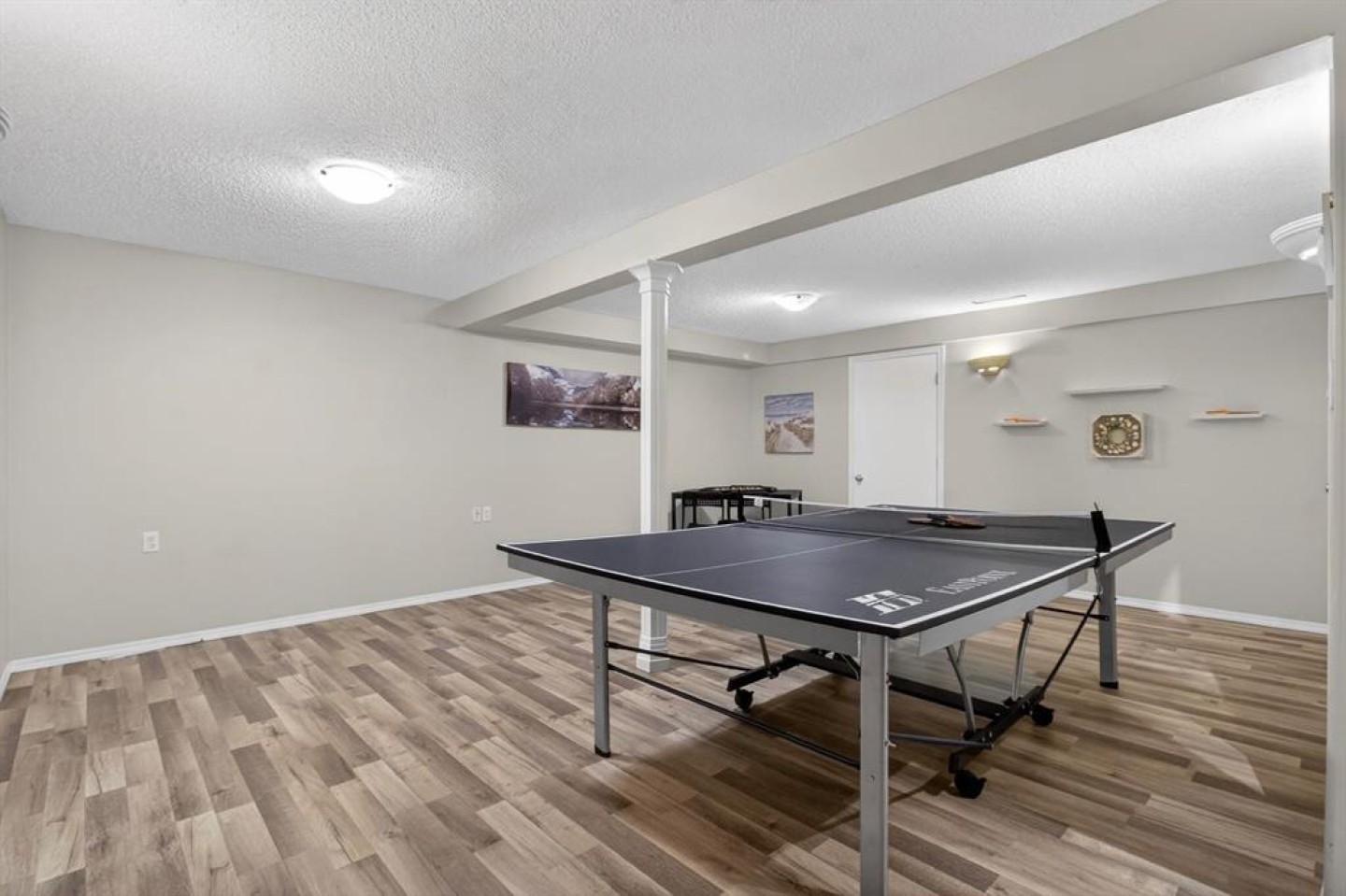 Refrigerator, Electric Stove, Built In Dishwasher, Range Hood Fan, Island with 4 stools, Ping Pong Table, Washer, Dryer, Window Coverings, Central Air Conditioner, Ceiling Fan