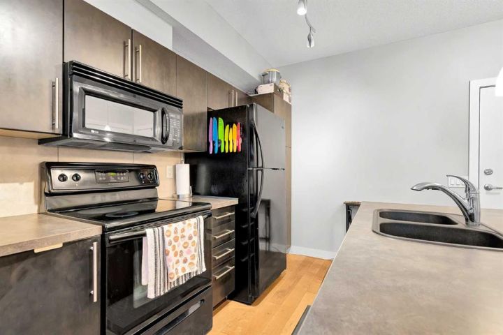Located in the high desirable community of Bankview, close to all amenities, including shopping , restaurants, parks, schools, beltline, Marda Loop and more. This west facing unit with private patio, freshly painted, is tastefully decorated with 9 foot ceilings, upgraded with engineered hardwood flooring, kitchen island, good size bedroom with walk-in closet, 4-piece bath and insuite laundry facility. Included is also heated underground heated parking stall and visitor parking. Enjoy the multilevel roof top garden patio, with fireplace and great panoramic city views. Call today for your private viewing!