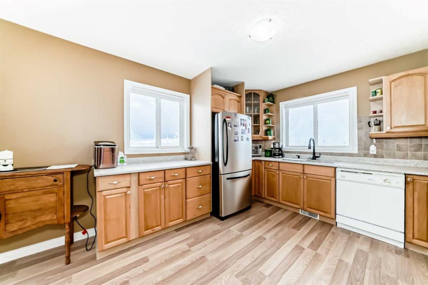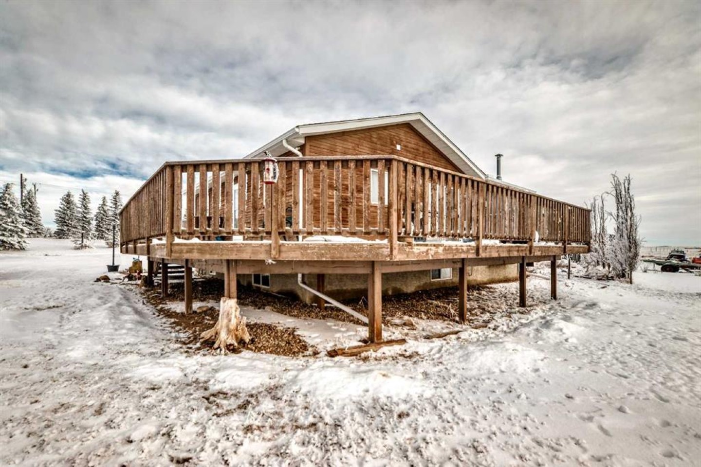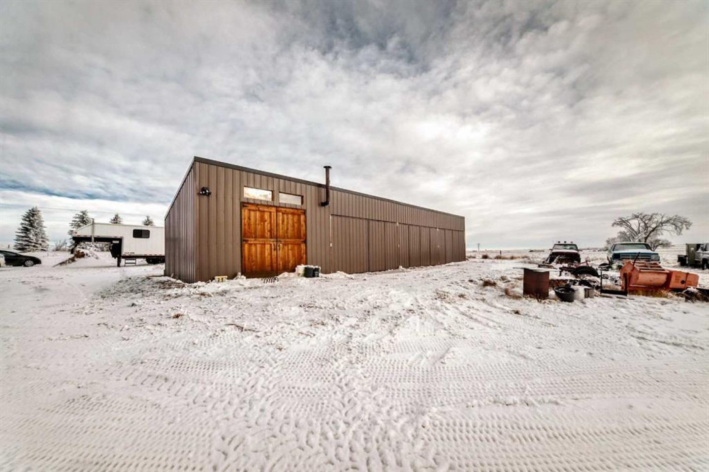 check out this 3 acre parcel with a 1224 sq.ft. bungalow and a heated 30 x 30 detached garage. This 4 bedroom 3 bath home is ready for a family has a large kitchen eating area with a sunken living room. There is a 16 x64 ft. storage shed. Amazing views with no close neighbors . With WID and adjacent land owner approval to supply water there is a dugout and irrigation system. Just 800 ft off of Highway 1 Just before Gleichen.