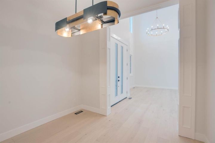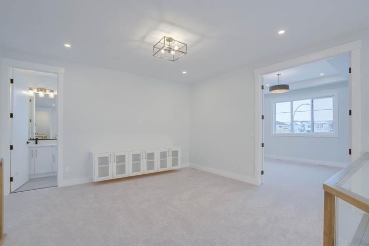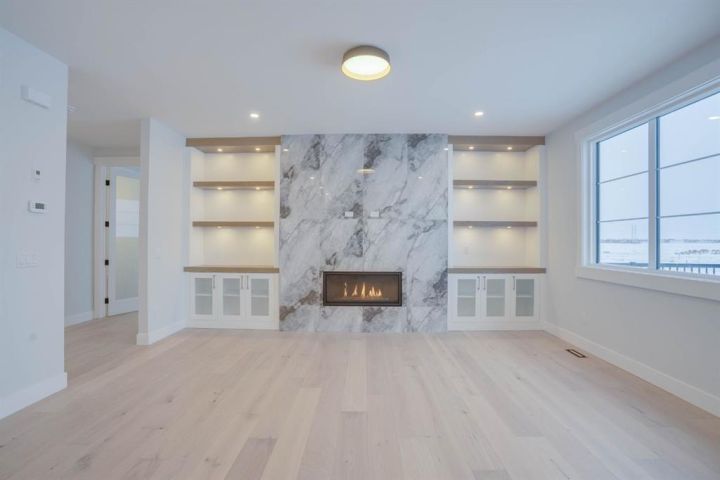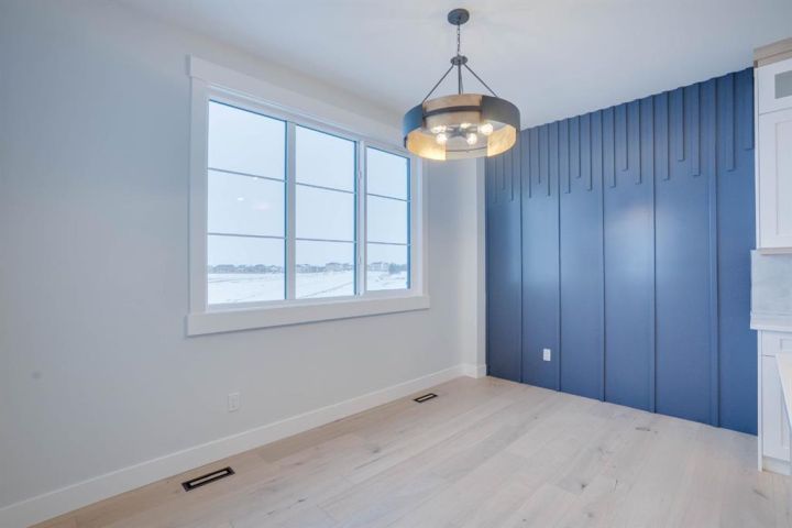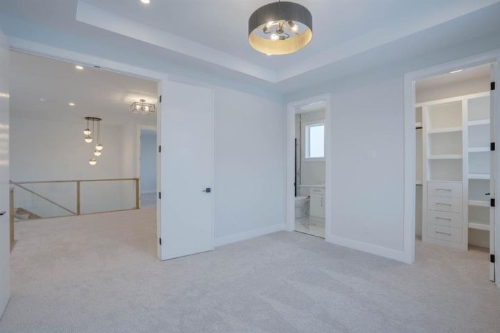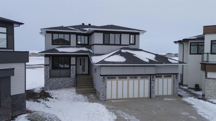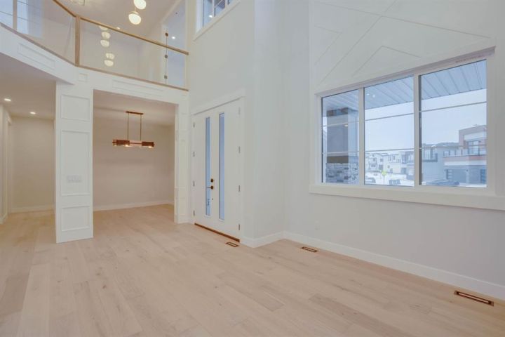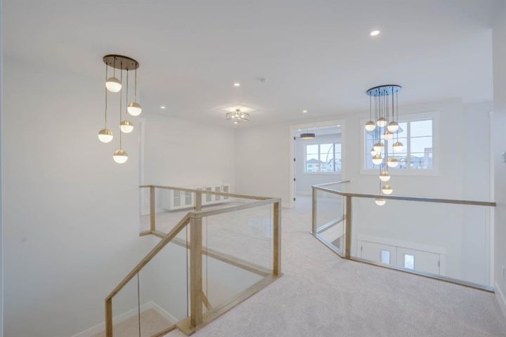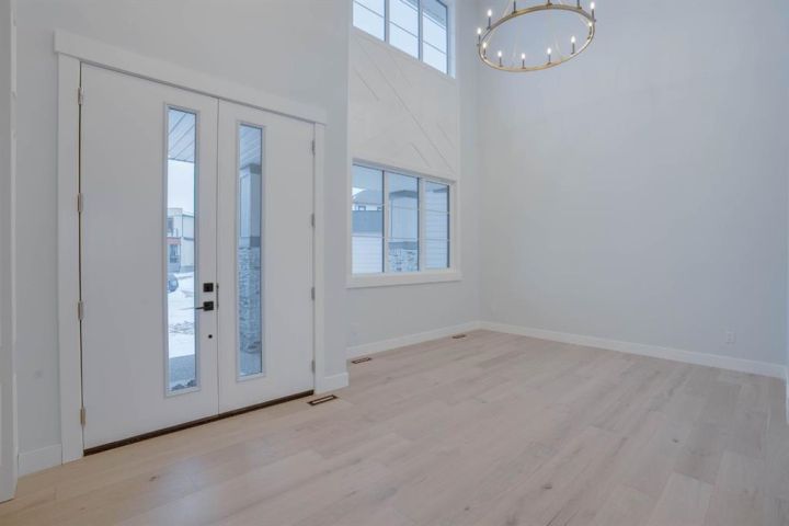 Welcome to this exceptional luxury home in the prestigious community of Waterford Estates, Chestermere. Step into a grand foyer that opens to an impressive living room with soaring open-to-below ceilings, setting the tone for the elegance and space this home offers. The main floor features a private office or den, a large bedroom with its own ensuite and closet, a spacious family room, a bright dining area, and a stunning gourmet kitchen with a massive island, complemented by a fully equipped spice kitchen and walk-in pantry. A generous mudroom and convenient two-piece bathroom complete this thoughtfully designed main level. Upstairs, the primary bedroom is a true retreat with a luxurious 5-piece ensuite and an expansive walk-in closet. The second bedroom also includes its own ensuite and walk-in closet, while two additional bedrooms share another full bathroom. A bonus room and upper-level laundry provide comfort and functionality for the entire family. Situated on a large pie-shaped lot with a huge backyard and a walkout basement, this home also features an attached three-car garage offering ample space for vehicles and storage. Ideally located near schools, parks, and shopping, this property combines elegance, convenience, and comfort in one of Chestermere’s most sought-after neighborhoods.