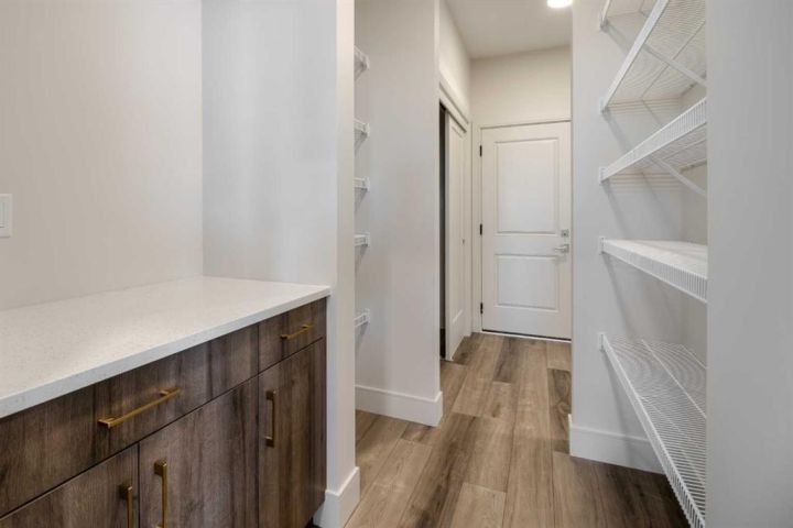 Welcome to the "Comrie" by Stranville Living, located in the desirable Lethbridge community of Southbrook. This new home is situated merely a few dozen meters from Dr. Robert Plaxton K-5 public elementary school, whose property includes a new playground, soccer pitch, baseball diamond, and a basketball court. Southbrook is conveniently located minutes away from big box shopping, various restaurants, and the VisitLethbridge.com arena and event center. This two storey home is well laid out and boasts a main floor rivaled by few homes of this size. It incudes a beautifully appointed kitchen with Adora Cabinets, fully tiled backsplash, and quartz countertops at the base cabinets and large island. Stranville Living's top tier appliance package includes a seamlessly integrated paneled Fisher & Paykel fridge, paneled dishwasher, induction cooktop, built-in hood fan, and a stainless steel wall oven and microwave combo unit. All in all, this is a clean and tight family home backing onto a new elementary school in one of the nicest neighborhoods in south Lethbridge. Tasteful finishes and quality workmanship make this an excellent investment for a buyer looking to start or continue the path to building equity through home ownership. High efficient mechanical equipment, Low E windows, and spray foam in the rim joists help keep your heating ad cooling costs in check. Very cool house on a terrific street in south Lethbridge! Photos contain virtual staging. There's nothing like NEW!