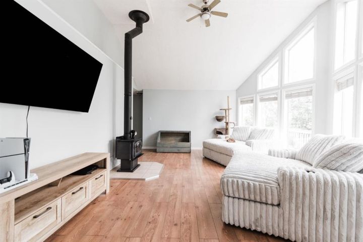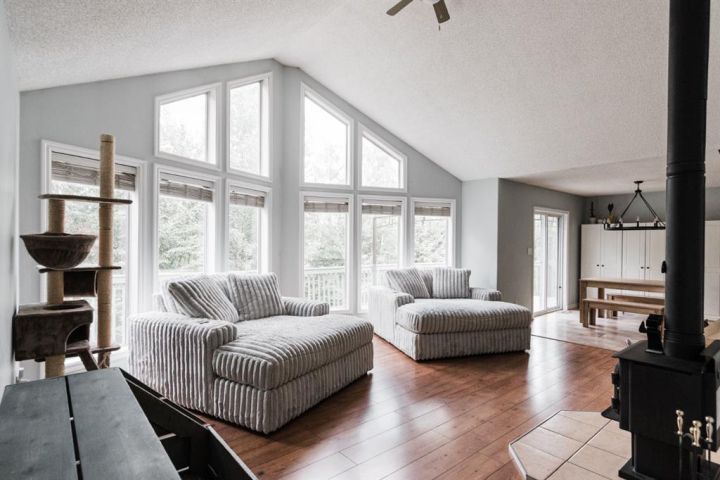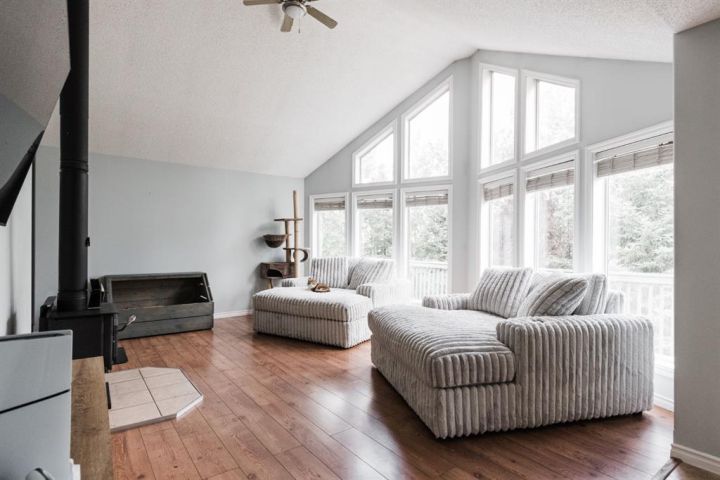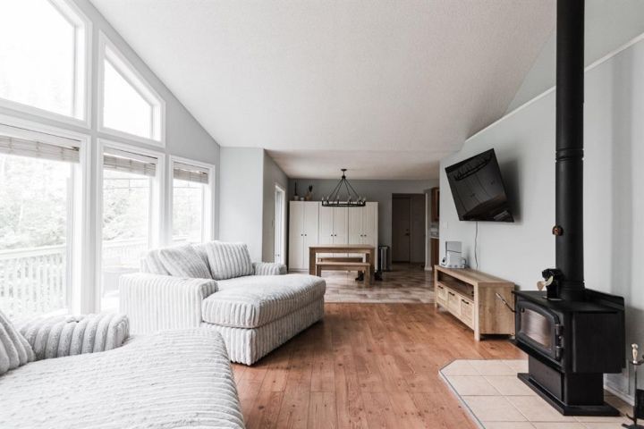 Follow the long, tree-lined driveway as it winds through towering evergreens and up to your A-frame style bungalow, where nature becomes part of your daily living. The surrounding trees not only create a peaceful and private atmosphere but also serve as a natural buffer, making your yard feel like an extension of the boreal forest. Whether you’re enjoying your morning coffee on the deck or hosting an evening fire, the sights and sounds of nature are all around you.