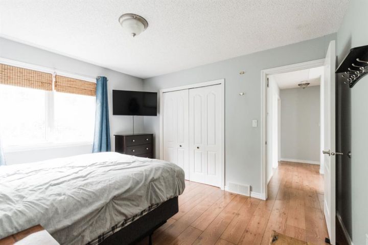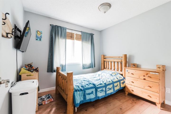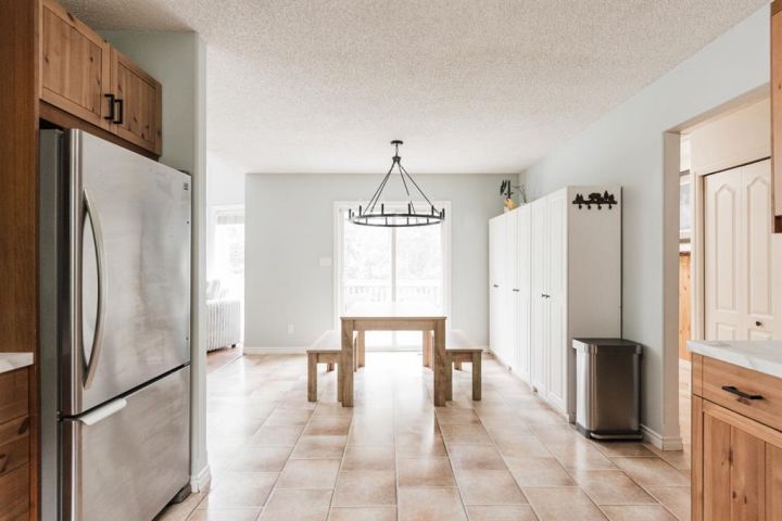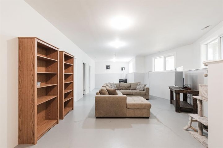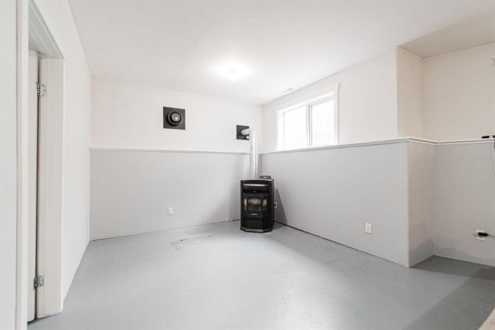 The fully finished basement offers even more space with two additional bedrooms, a large family room with oversized windows, and a pellet stove for efficient heating. A three-piece bathroom and a large laundry and storage area round out this level, offering both comfort and functionality.