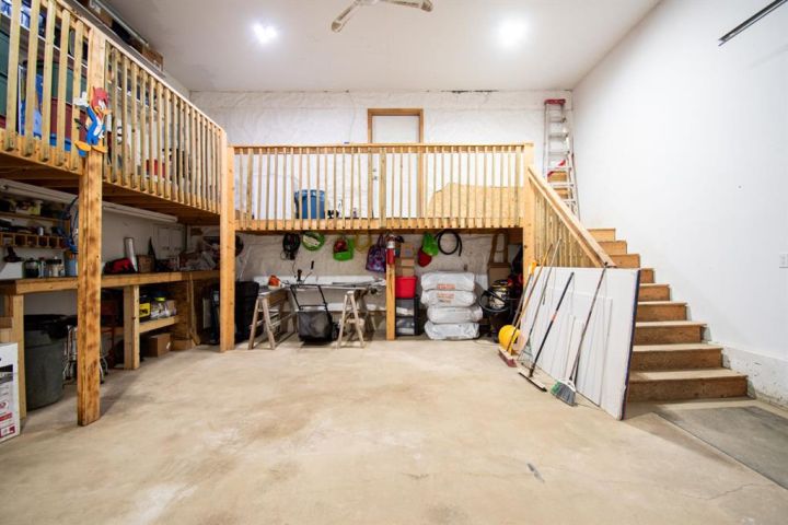 The attached garage has the feel of a full workshop with its soaring ceilings, a new gas heater (2021), and added loft storage—perfect for toys, tools, or year-round projects.