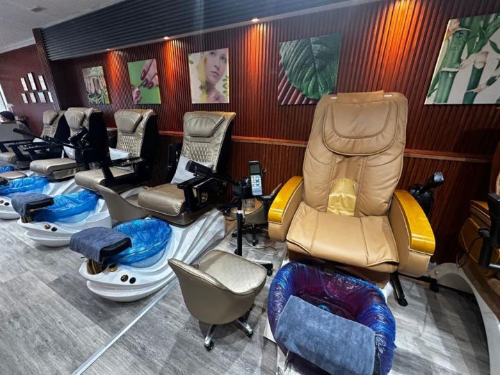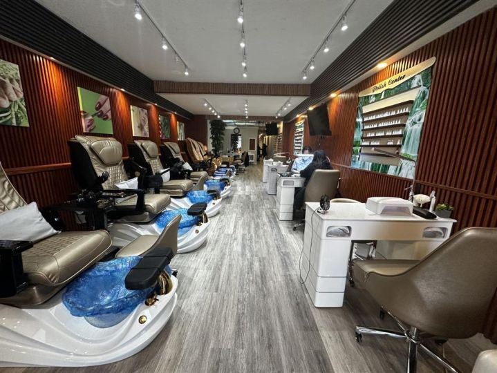The approximately 1,200 sq. ft. space features an elegant, modern, and professionally maintained interior designed for efficiency and customer comfort. The premises include two private treatment rooms, with one oversized room suitable for couple massage, seven nail stations, and six footbath spa chairs, providing excellent operational flexibility. Additional features include two bathrooms (one with a shower), a dedicated washer and dryer room, as well as a kitchen and storage area to support smooth day-to-day operations.