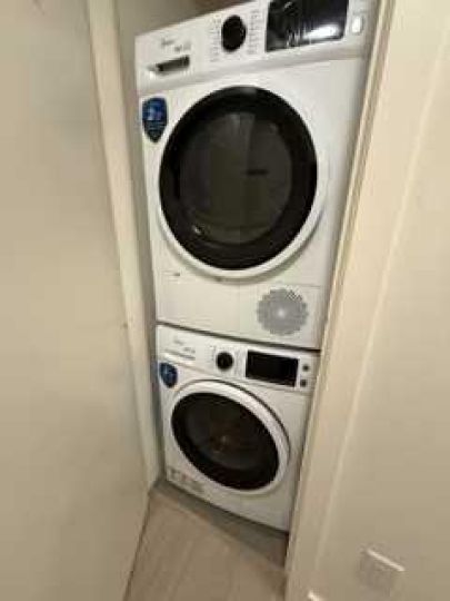 Inside, the layout is efficient and open, with large windows bringing in consistent daylight and showcasing the river views. The living space flows into a modern kitchen with built-in appliances, quartz countertops, clean finishes, and a central island that works well for everyday meals or hosting friends. In-suite laundry and secure storage add to the convenience.