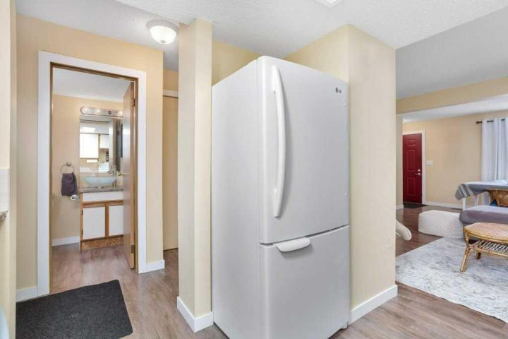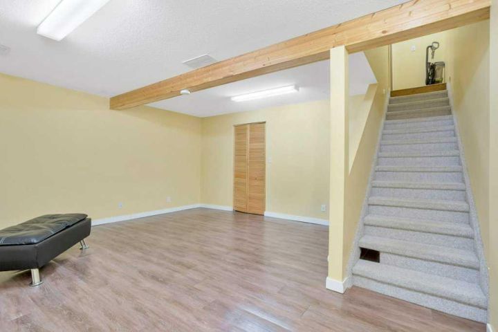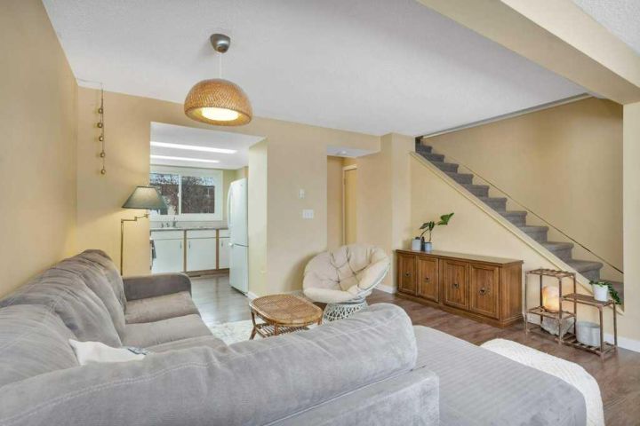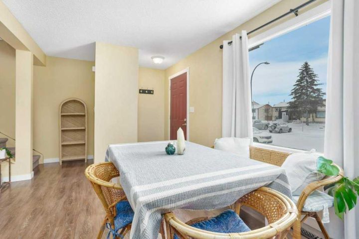 MOVE IN READY TOWNHOME IN SOUTH RED DEER! Incredible value in this well-maintained family home, ideally located in Bower! Offering 1036 square feet of comfortable living space, this three bedroom, two bathroom home features an inviting open concept layout with a spacious living and dining area, beautifully lit by south exposed windows that fill the space with natural light. The charming kitchen offers ample cupboard & countertop space, durable vinyl plank flooring, and a bright window above the kitchen sink overlooking the yard. Adjacent the kitchen is the convenient two piece bathroom completing the main level. Upstairs, you'll find three generous bedrooms, including a spacious primary retreat and a beautifully updated four piece bathroom. The finished basement provides a second living space with the large family room and utility/laundry room with additional storage space. The north facing back yard is completed with a cozy deck, fenced yard, and two car parking areas. Perfect for first-time buyers or investors, this home offers a rare chance to get into one of Red Deer's mature communities all within walking distance to parks, playgrounds, transit, fitness center, restaurants and shopping. Updates over the years include: high efficient furnace, hot water tank and sump pump (2024), 40 year shingles (2015), dryer (2022) and some vinyl windows. This is a a great opportunity, don't miss out!