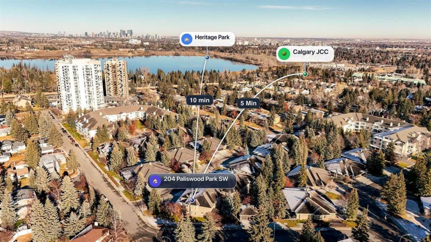 DOUBLE ATTACHED GARAGE | OVER 2350 SQ FT OF DEVELOPED SPACE | PRIVATE SETTING | CENTRAL A/C | SOUTH BACKYARD. Welcome to 204 Paliswood Park SW, located in the highly sought after SW community of Palliser and set in an incredibly private and well run complex. This expansive home offers more than 2350 square feet of developed living space in a quiet treed environment with a sunny south facing backyard and a layout that feels both spacious and comfortable. The main floor features hardwood throughout with a bright formal living and dining area along with an open kitchen that includes a large breakfast bar, ample cabinetry, a built in desk and a breakfast nook overlooking the south backyard. A separate family room sits just off the kitchen and offers large windows and is centred around a cozy gas fireplace with oak built ins, an ideal setting to relax with a book this winter or host friends and family over the holidays. This level also includes a 2-piece powder room and access to the large double attached garage. The upper level has a generous master bedroom with a walk in closet and a spa like ensuite with double vanity, a large jetted tub and a stand up steam shower. This level also feautres a second large bedroom with access to an additional 4 piece bathroom, a beautiful sun soaked den with oak millwork that functions as a home office, additional living space or a guest room if needed, along with a conveniently located upper level laundry room. The unfinished lower level is ready for your finishing touches with plenty of space for future development, or can be used as is for unlimited storage options. West Park is a well managed complex with all landscaping and snow removal included in the fees, making it an ideal option for snowbirds or any frequent traveller. The complex has seen major updates including the removal of Poly B and new driveways over the past few years, and this unit has also had the furnace and hot water tank updated in the last 3 years. This prime SW location places you only minutes from the Glenmore Reservoir and its extensive pathway system, Glenmore Landing Shopping Centre, the Jewish Community Centre, Rockyview Hospital, Southland Leisure Centre, and offers excellent access to the SW Ring Road, making getting around the city very easy. Please reach out today to schedule a private showing.