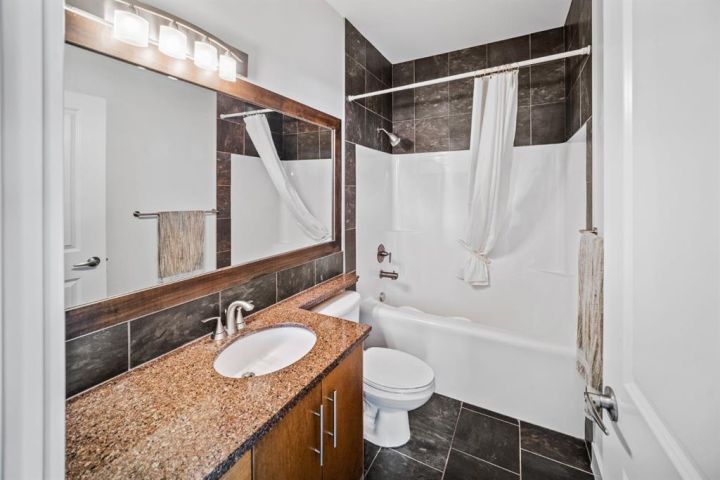 The fully finished lower level adds even more flexibility, featuring a spacious third bedroom with walk-in closet and a full bathroom finished with marble countertops — ideal for guests, teens, or a private workspace.