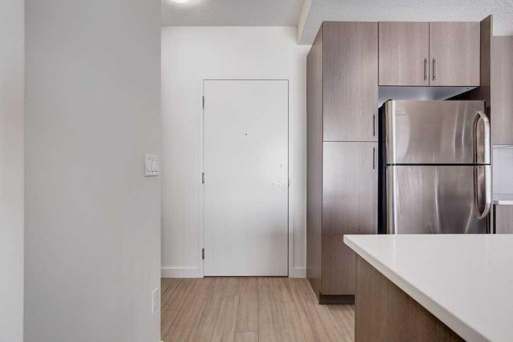 This stylish one-bedroom condo offers an impressive blend of comfort, convenience, and lifestyle amenities. The unit includes a titled, heated underground parking stall ideally located near the entrance, along with a separate titled storage locker and exclusive lake access. The home showcases sleek white quartz countertops, a functional eat-up kitchen island, and a modern open-concept layout designed for both everyday living and entertaining. The bedroom features a generous window and plenty of closet space, while the bathroom offers a deep soaker tub and a quartz-topped vanity. The bright and welcoming living area seamlessly extends to a spacious patio, creating an ideal space to relax or entertain. Set in the desirable community of Midnapore, residents enjoy a vibrant neighborhood atmosphere with quick access to Shawnessy and Lacombe LRT stations, shopping, grocery stores, schools, and a variety of dining options. Outdoor enthusiasts will appreciate the close proximity to Fish Creek Provincial Park, known for its extensive walking and biking trails.