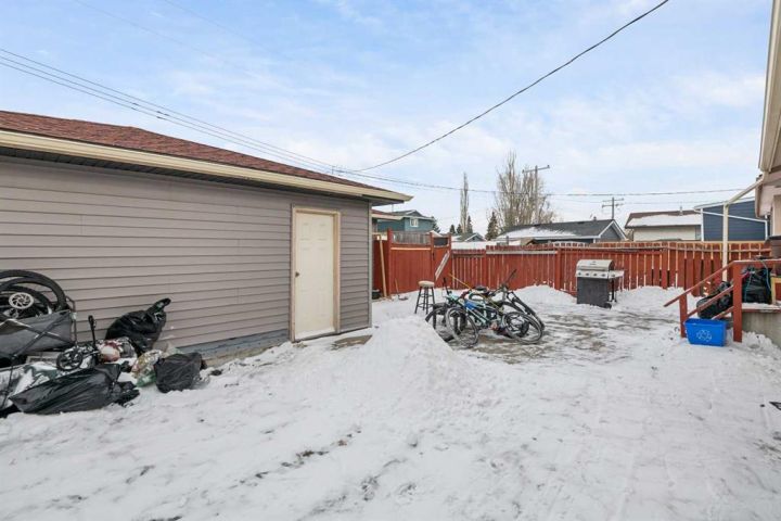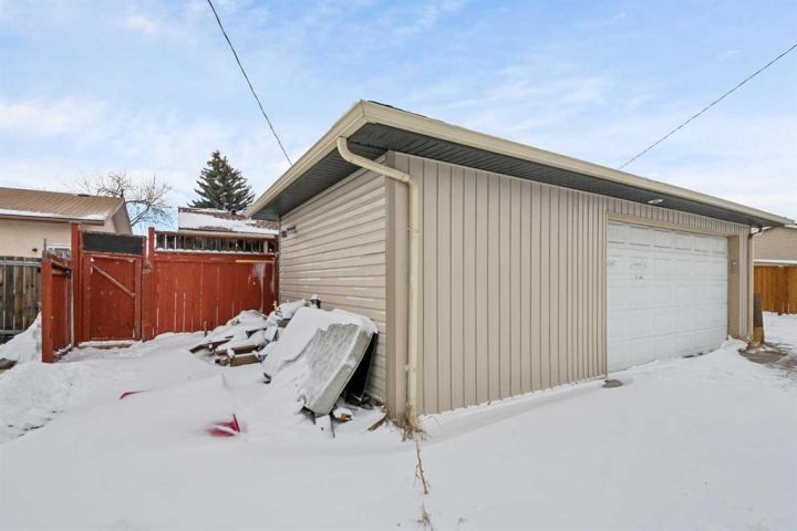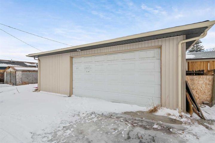 Features include a separate basement entrance, fenced yard, and an oversized double detached garage generating additional income. Located on a quiet residential street with convenient access to transit, schools, shopping, and major roadways.