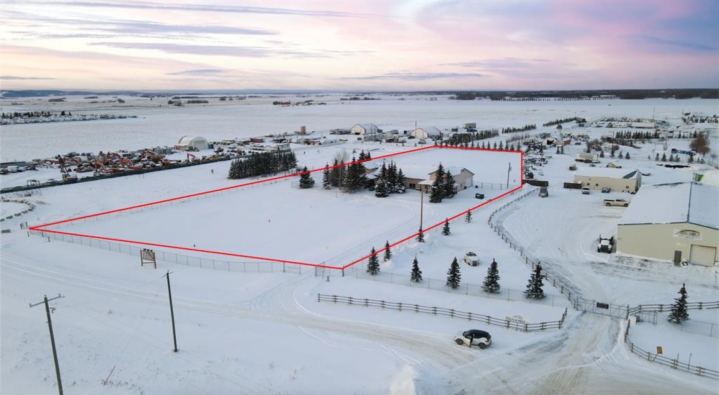 RARE LIVE/WORK OPPORTUNITY WITH EXCELLENT ROAD EXPOSURE FOR YOUR BUSINESS! 3.35 ACRES, ZONED C-HWY (MIXED USE, SEE SUPPLEMENTS FOR DETAILS). This one-of-a-kind property is located 10 minutes north of Cochrane (HWY 22 & HWY 567) and offers a fully renovated 2751 SQ FT home with a 4169 SQ FT commercial space. The bright and open main floor features a spacious living room with office space, a cozy dining room, and a 3 piece bath/laundry all highlighted by gorgeous stamped concrete floors. The luxurious chef’s kitchen offers quartz countertops, a spacious island/breakfast bar, a coffee station with a second sink, ample cabinet space, and high-end appliances – perfect for entertaining and the at-home gourmet. Upstairs, relax in the primary retreat which includes an upscale 5-piece ensuite (relaxing soaker tub, stand-up shower, double sinks), a large walk-in closet, and views of the Rocky Mountains. Completing the upstairs are 3 additional bedrooms, a 4 piece bathroom, and plenty of storage. You will fall in love with the oversized (49'2" x 21'2" 0), heated/insulated garage where you could easily park 6 vehicles/toys - perfect for a home mechanic, car enthusiast, or tradesperson. The commercial space offers a huge showroom, front desk, office, 2 bathrooms, loft/office, and additional garage. This space is ideal for any entrepreneur or established business. Other features included a custom log wood staircase, a large patio, new chain link fencing & amazing views. Ideally located just minutes from Cochrane and a short commute to Calgary this property offers huge potential and would be hard to recreate. Please reach out for more details and to arrange a private viewing. *** RESIDENTIAL - 2751 SQ FT, COMMERCIAL - 4169 SQ FT. ***