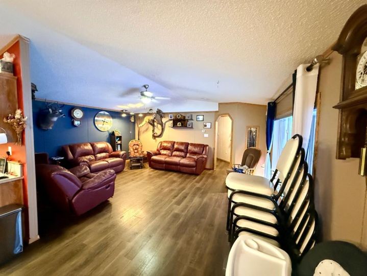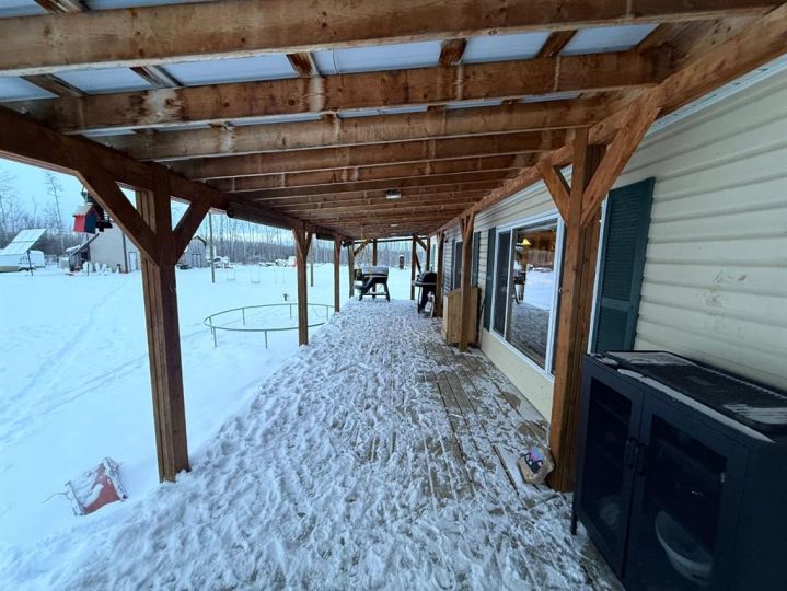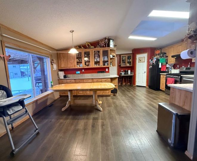 Welcome to this pristine 12-acre acreage located on a quiet dead-end road just 19 miles east of La Crete, offering excellent privacy with Crown land bordering the west side. The well-maintained 4-bedroom, 2-bath 20 wide home features a welcoming entrance and an open-concept kitchen, living, and dining area under vaulted ceilings. The kitchen offers ample cabinetry, and the bright, crisp interior reflects pride of ownership throughout. The primary bedroom includes a walk-in closet and ensuite, while three additional bedrooms are located at the front end of the home. A separate laundry room adds convenience, and home will come with all the appliances included! Outside, enjoy the 10’ x 40’ covered deck overlooking the established yard, garden space, mature perimeter trees, and a large fenced dugout. The property also includes a large heated shed and a 16’ x 20’ hip-roof shed, providing excellent storage and workspace. With plenty of room for a hobby farm or to enjoy the acreage lifestyle, this private and peaceful property is one you won’t want to miss. Come take a look today!