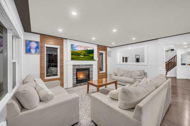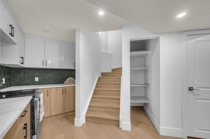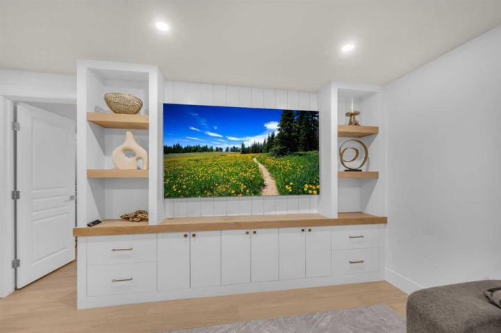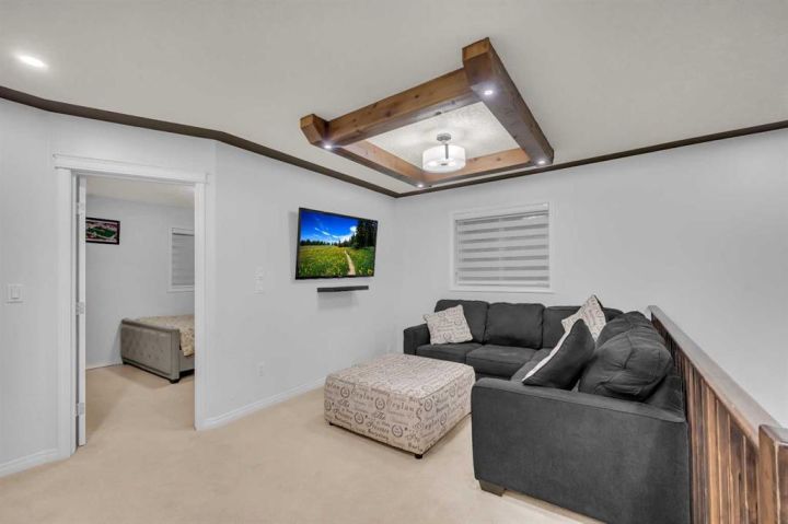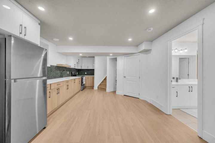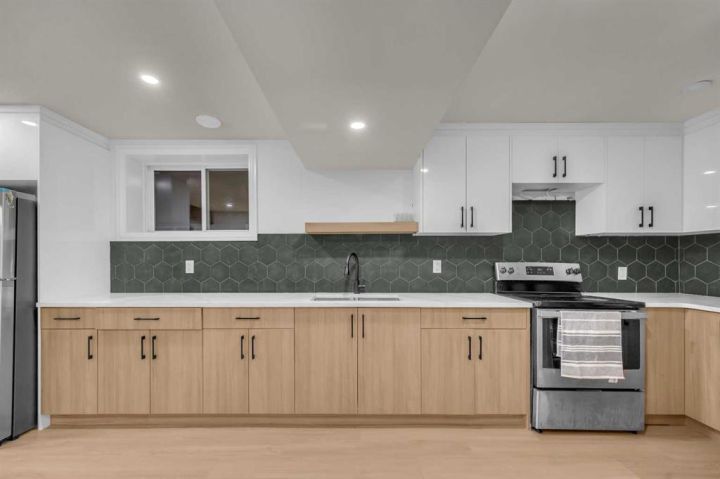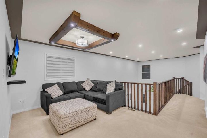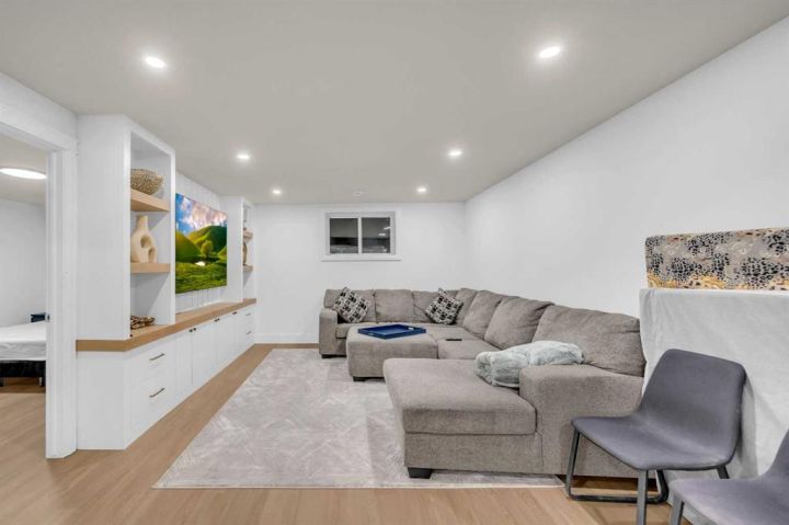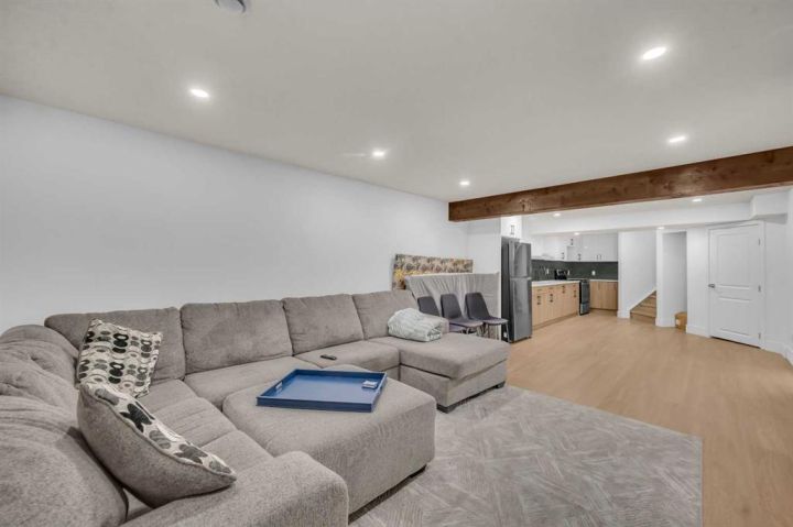The fully finished basement adds even more versatility with a separate side entrance, offering excellent potential for multi-generational living or income opportunities. The basement includes an illegal 1-bedroom suite that has been tastefully updated with brand-new kitchen cabinets, new flooring, new appliances, and modern built-ins, providing a fresh and comfortable living space. In addition to the suite, the lower level features a massive recreation room ideal for a home theater, games area, or gym, along with another huge and bright bedroom. Outside, the property continues to impress with a large, fenced backyard that offers privacy, space, and endless potential for outdoor activities. The expansive deck is perfect for barbecues, gatherings, morning coffee, or evening relaxation, and even provides beautiful lake views—a rare and special feature. With central A/C, a triple garage, and its unbeatable location mere steps from the lake, parks, pathways, and schools, this home delivers outstanding value and a lifestyle that is second to none.