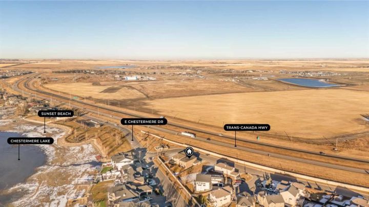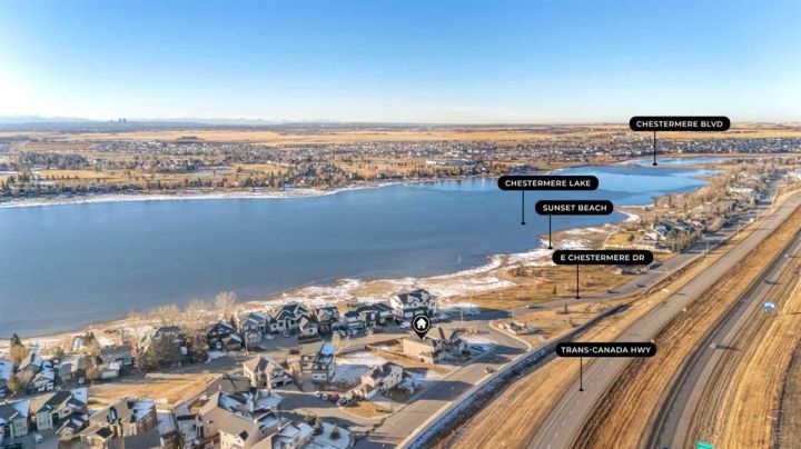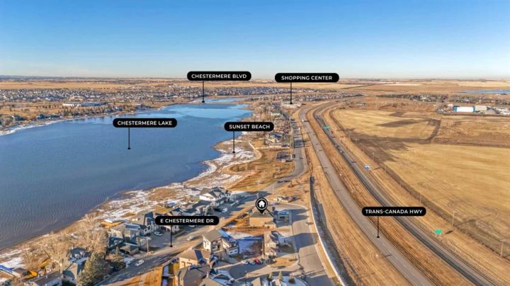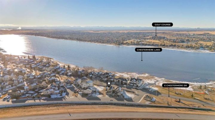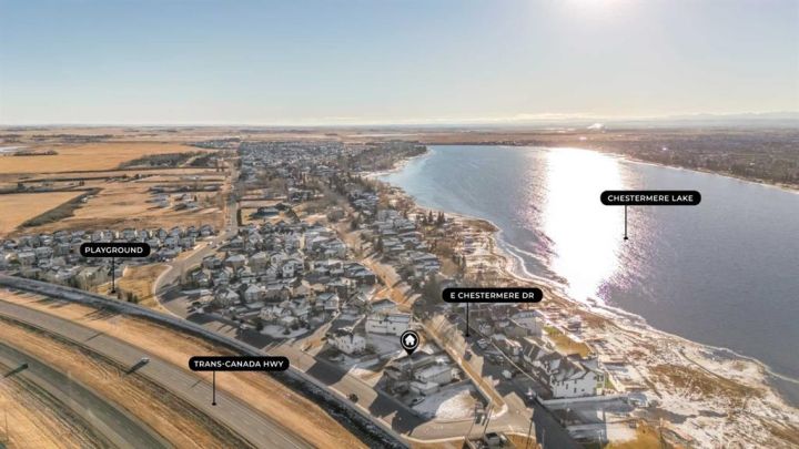 Welcome to this exceptional 2-storey family home located in one of Chestermere’s most desirable areas—just a 2-minute walk to Chestermere Lake and its sandy beach, offering the perfect blend of everyday convenience and year-round lake-lifestyle living. Situated on an impressive 6,942 sq. ft. lot and complete with a triple attached garage, this home provides an abundance of indoor and outdoor space for growing families, entertainers, and anyone seeking an elevated lifestyle steps from the water. As you step inside, you are greeted by a grand and inviting open-to-below living room that fills the main floor with natural light, creating a warm and welcoming atmosphere. A cozy gas fireplace serves as the focal point of the space, making it the perfect gathering area for family and guests. The expansive kitchen is designed for both daily functionality and entertaining, featuring granite countertops, stainless steel appliances, a large walk-in pantry, ample cabinetry, and a generously sized dining area overlooking the backyard. Adjacent to the main living space is a spacious main-floor den, ideal for a home office, playroom, or quiet flex room to suit your needs.