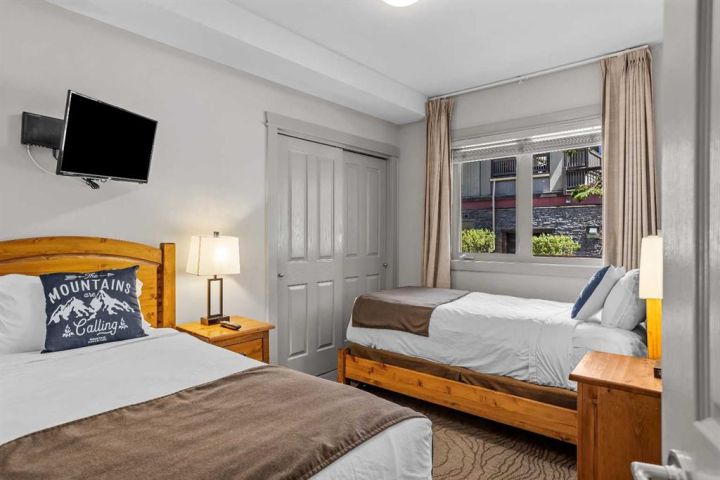 Welcome to your turnkey mountain retreat at the Lodge of Canmore — a beautifully renovated and fully furnished 2-bedroom, 2-bathroom ground floor apartment with the rare flexibility to Airbnb when you're not enjoying it yourself. This stylish and thoughtfully updated unit features a modern kitchen, refreshed bathrooms, and cozy living spaces — all designed for comfort and function. Step outside and you're just moments from the heated outdoor pool, hot tubs, and fitness centre, or take a short stroll to vibrant downtown Canmore with its shops, dining, and trails. Whether you're looking for a personal getaway, an income-generating investment, or both, this property delivers with strong short-term rental potential in a highly sought-after location.
