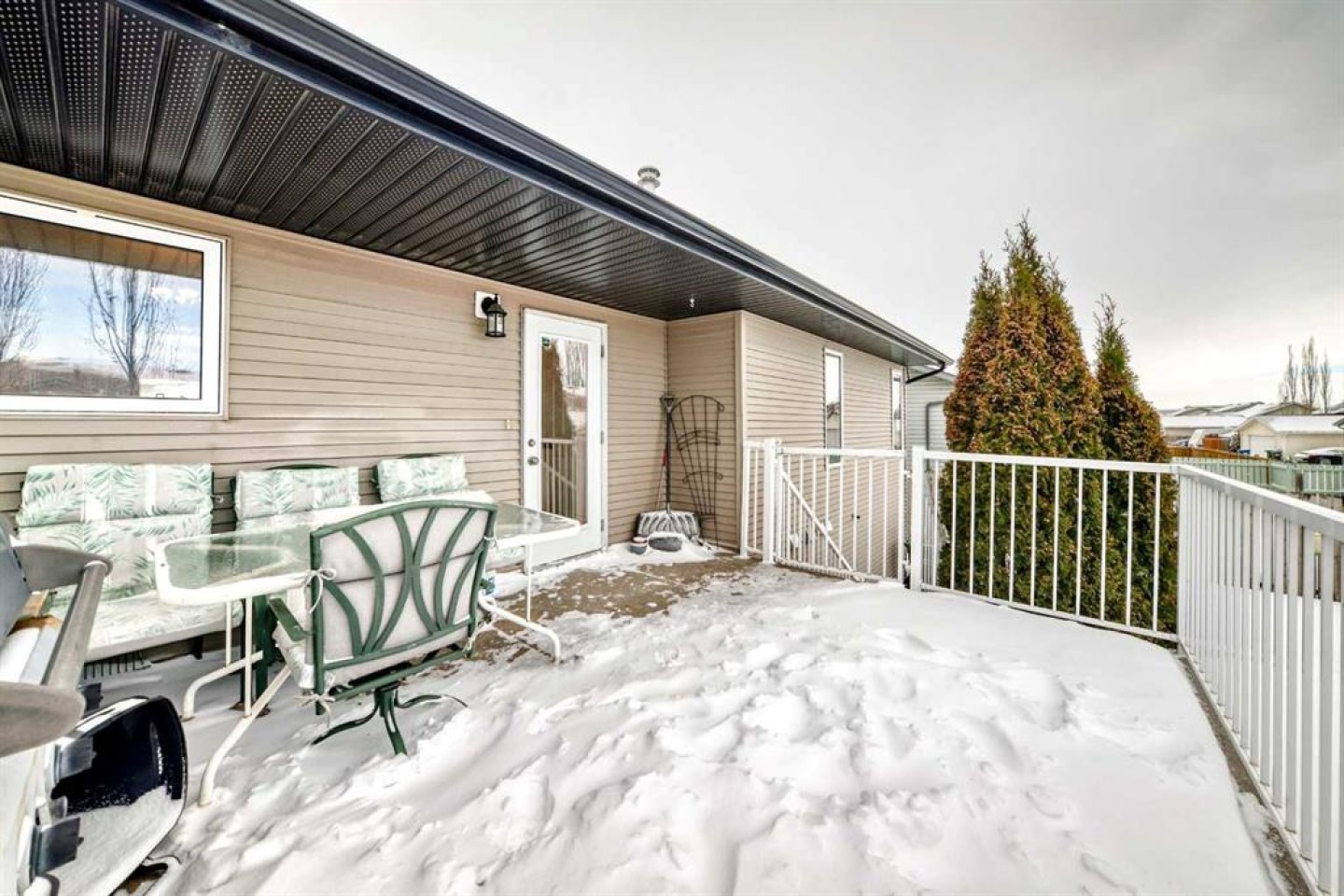 WELCOME to this terrific family home, perfectly situated on a highly desirable close. Designed with comfort and functionality in mind, this home features oak hardwood and tile flooring throughout the kitchen, front entry, and all bathrooms. The open-concept main living area is bright and inviting, highlighted by vaulted ceilings and a cozy gas fireplace in the living room—ideal for both everyday living and entertaining. The spacious kitchen offers an abundance of cabinetry, stainless steel appliances, a breakfast bar, and built-in cabinets and drawers for a convenient office or homework space, and features direct access to the deck, perfect for summer BBQs. The adjoining dining area provides plenty of room for family gatherings with an open floor concept to the living room. The main level includes three bedrooms, including a generous primary suite with a walk-in closet and a 3-piece ensuite. A full 4-piece bathroom completes the main floor. Downstairs, the fully developed basement offers exceptional living space with two additional bedrooms, a large family/rec room ideal for a TV or theatre area, and a 4-piece bathroom. The basement is roughed in for in-floor heating and central vacuum, with laundry conveniently located in the mechanical room. Outside, enjoy the fully fenced and landscaped backyard, complete with a fire pit for relaxing evenings. The maintenance-free deck features Duradek flooring and aluminum railings, making it both durable and stylish. With five bedrooms, multiple living areas, and a fantastic location, this home offers plenty of space for a growing family!