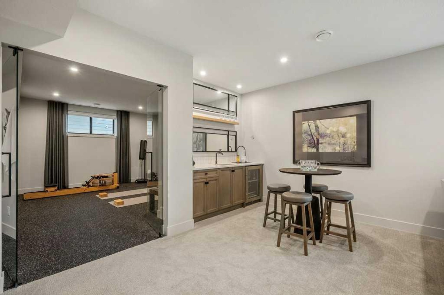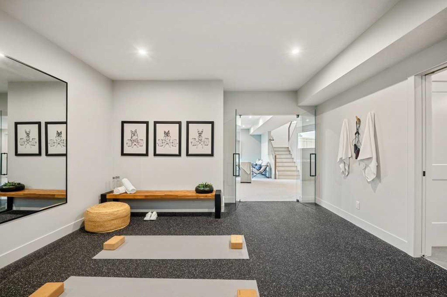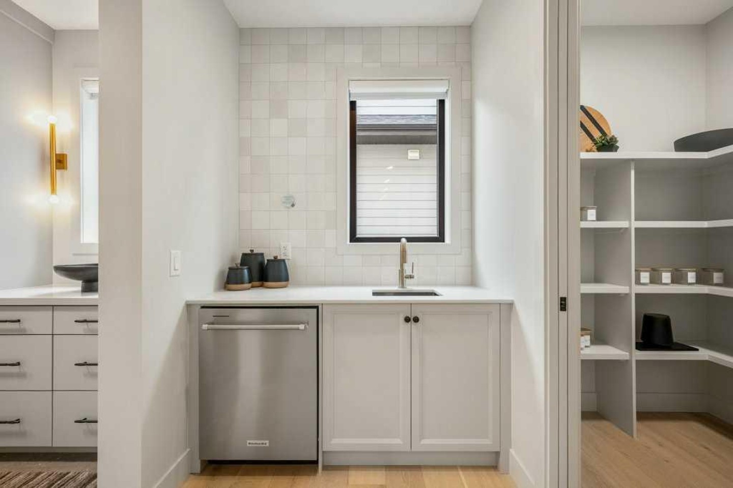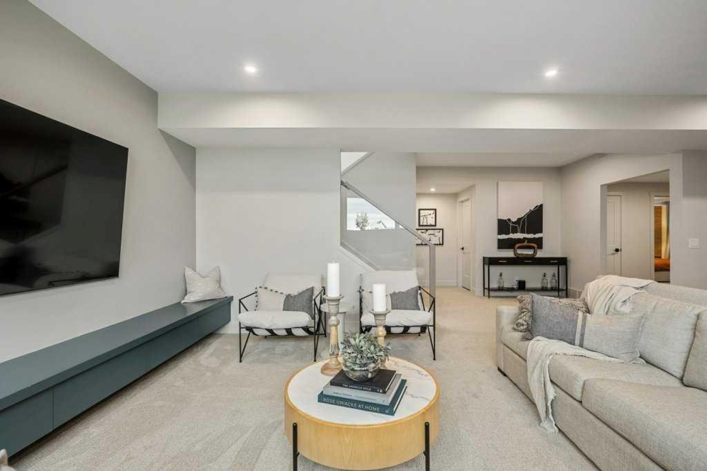 Basement TV and mount, basement rack in the utility room, dishwasher,